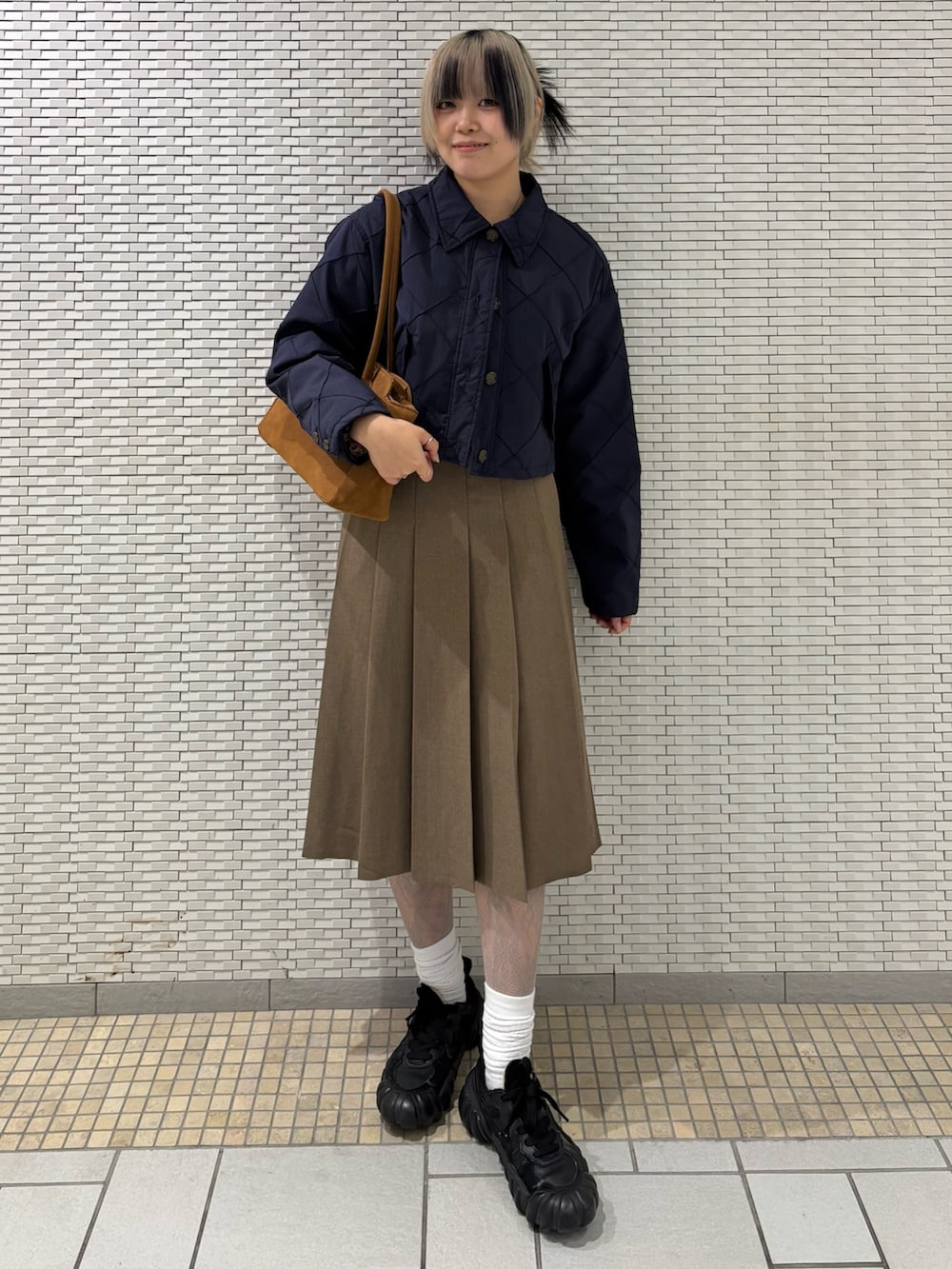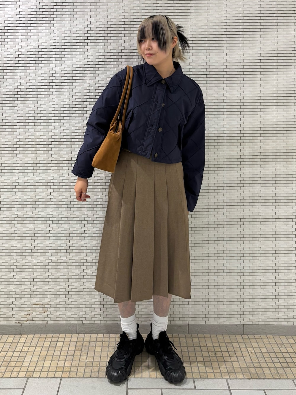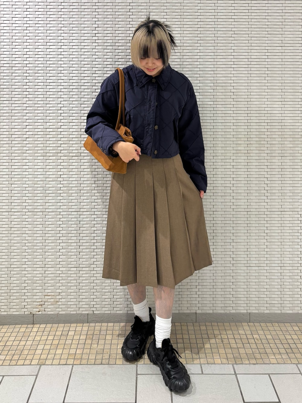 ボタンの色とおなじ色のプリーツスカートを合わせ少し韓国っぽい雰囲気に♪♪♪