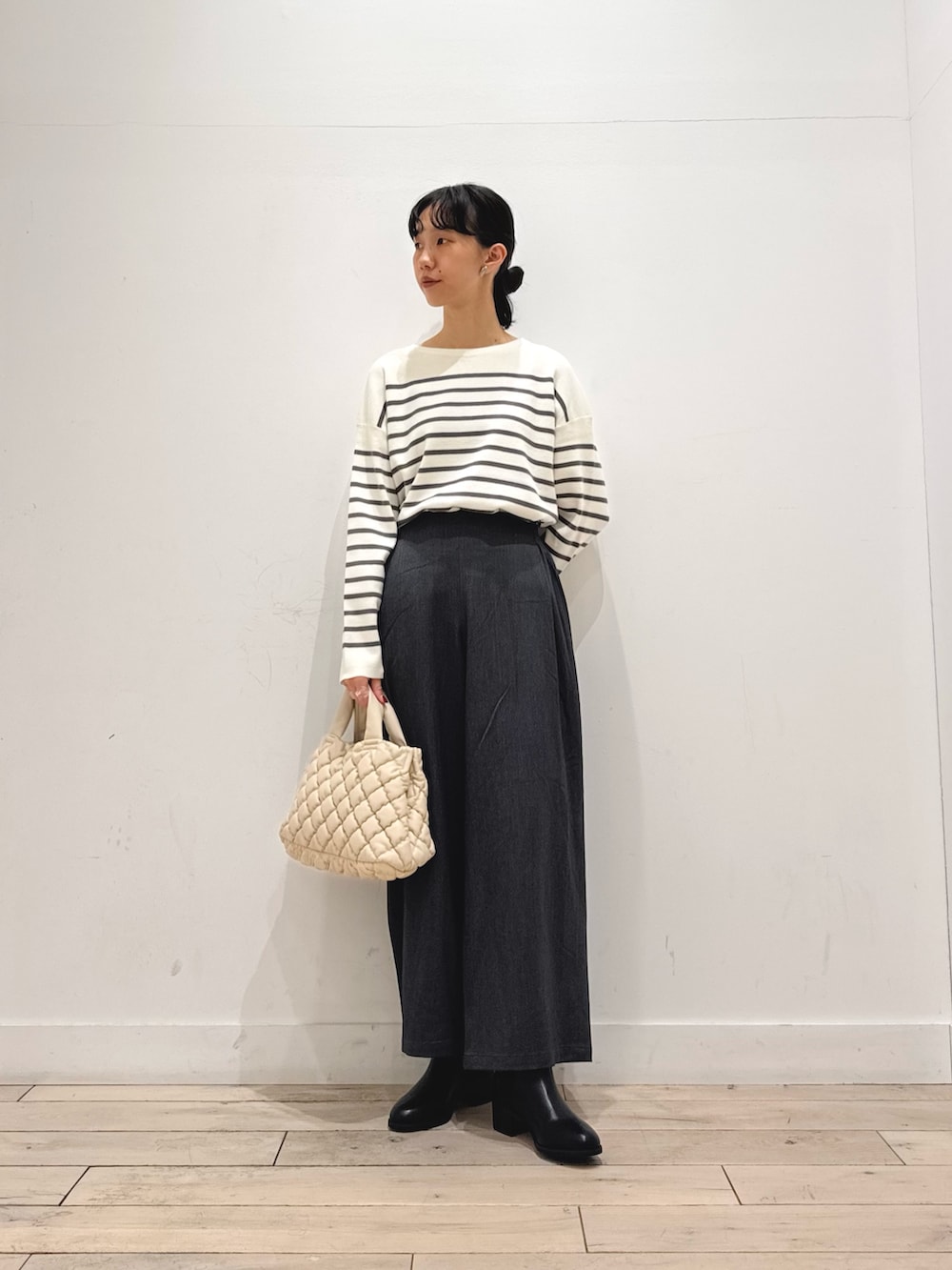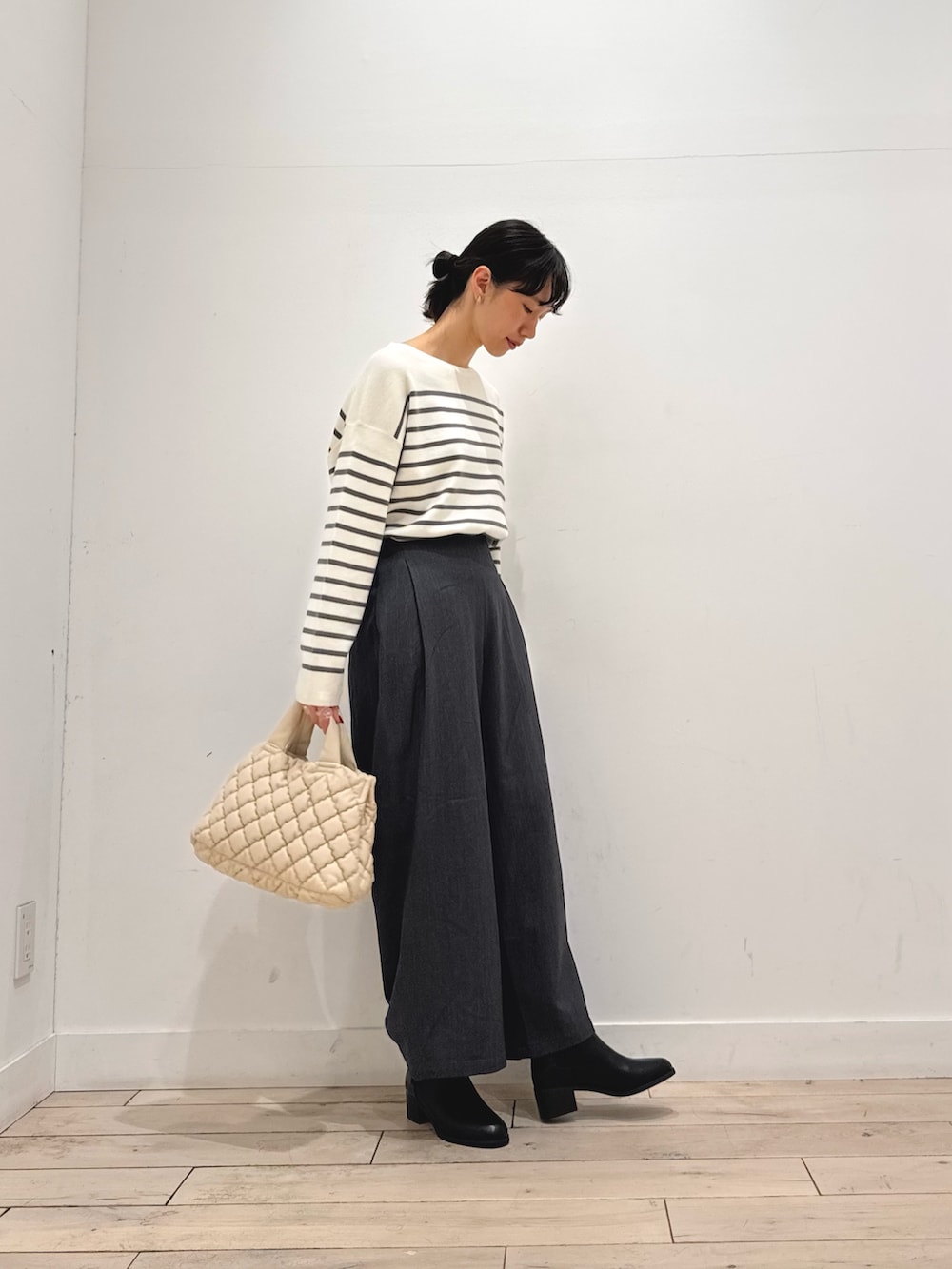 トップスの素材感がモチモチとしていてとても気持ちいいです☺️厚手ではないので、カーディガンやアウターも着やすくなってます!