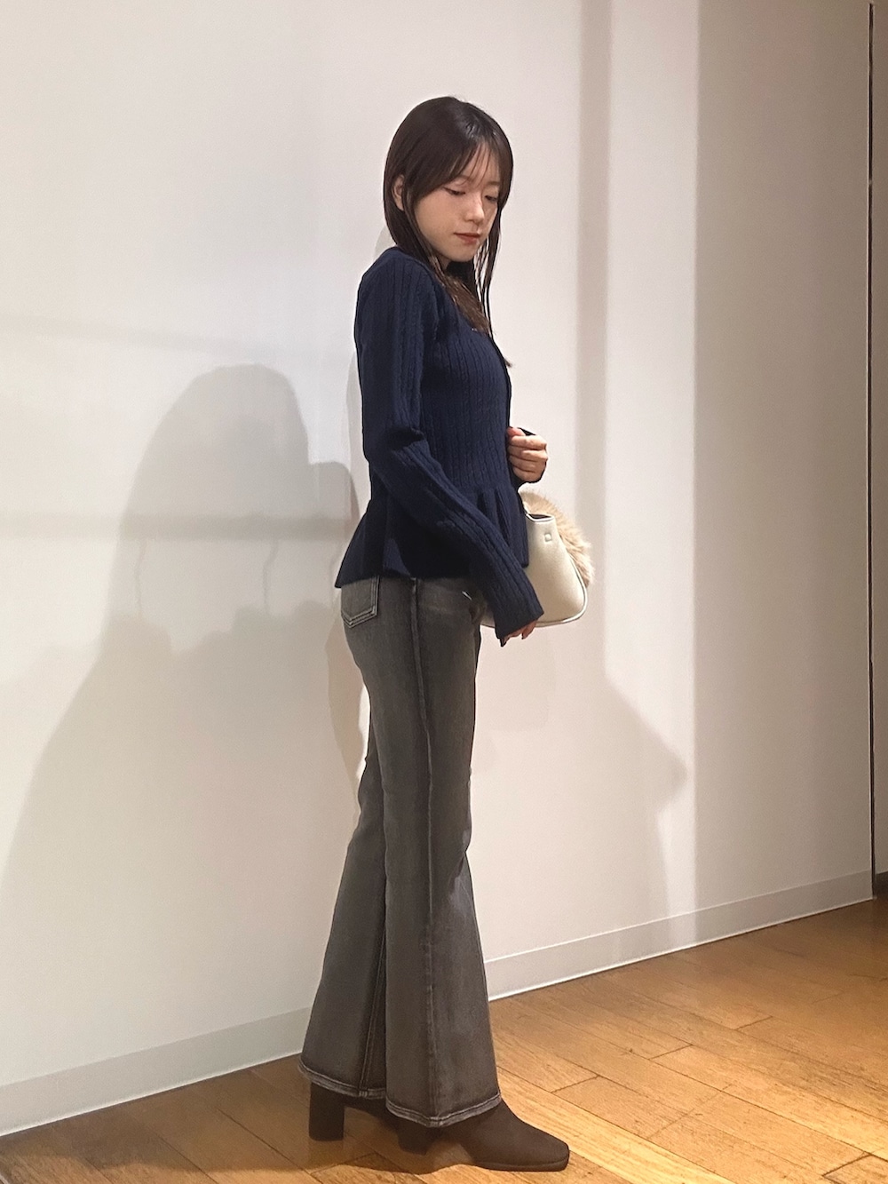 ペプラム裾がポイントのトップスなので、スッキリシルエットでシンプルめなパンツやスカート合わせがおすすめです^^