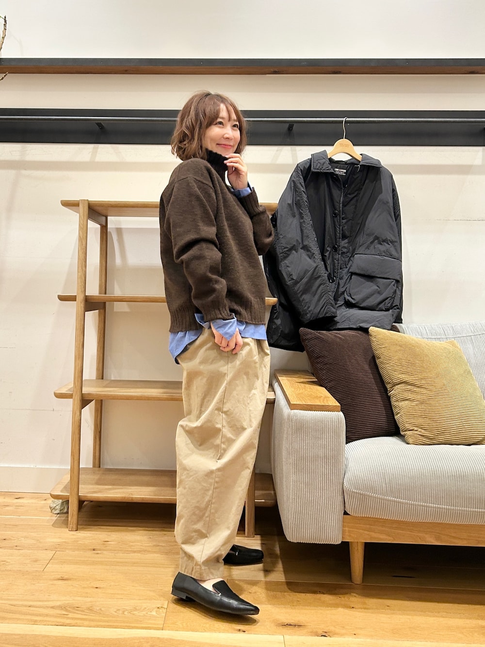 肉厚でしっかりした生地感ですが重たく見えず、休日のお出かけやリラックスしたい日にもぴったりです♪