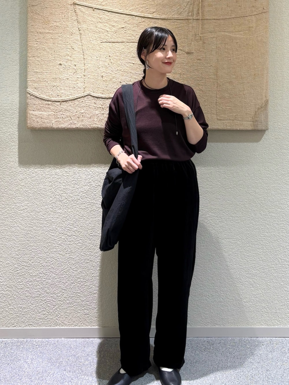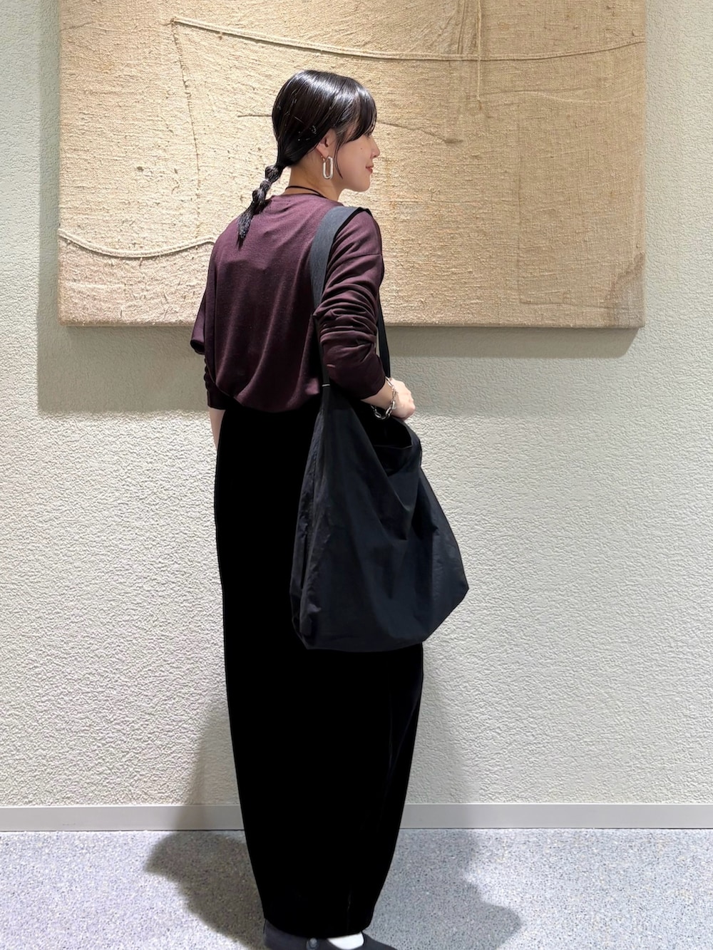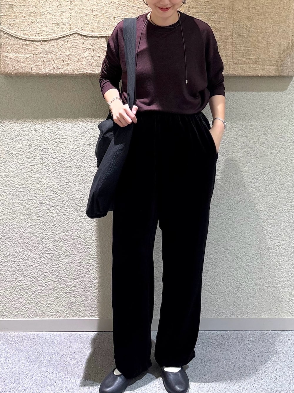 ・素材のコントラスト(ウール×ベルベット)で奥行きのあるコーディネートに。