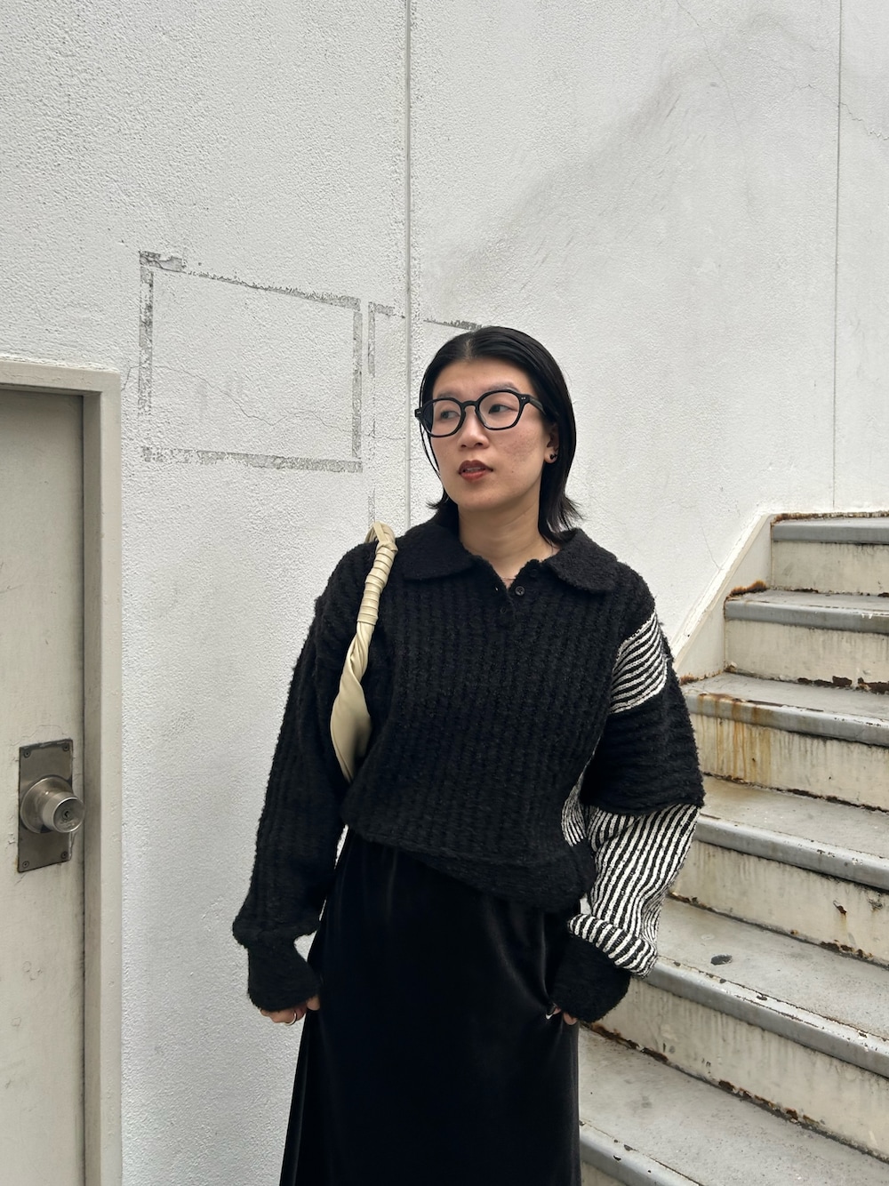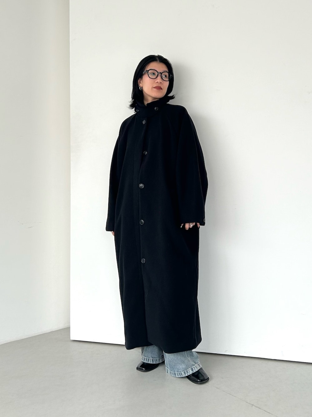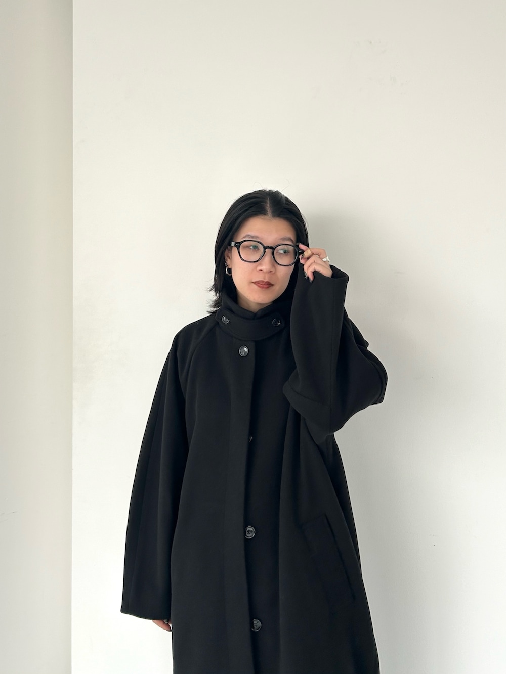 シンプルなデザインですが、ふわっと丸シルエットやスタンドカラーにできる襟がポイント!