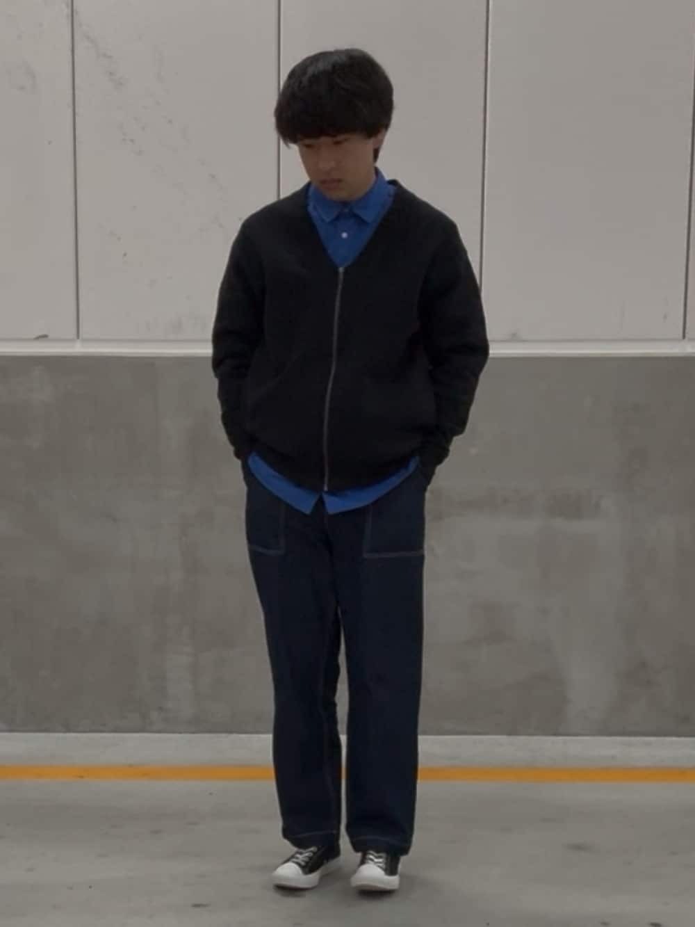 秋におすすめのコーデです!青色のシャツが印象的で他にもカラー展開があるので、自分好みに着こなせます!