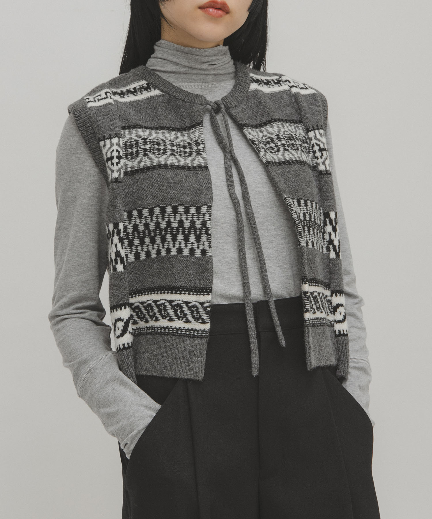 ニットベストは春はブラウス、冬はハイネックのニットと合わせても可愛く、ジャケットを合わせてもアクセントになるのでお勧めです◎