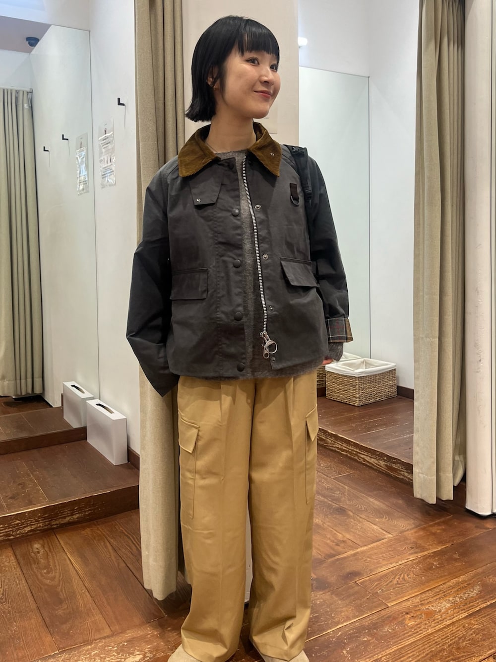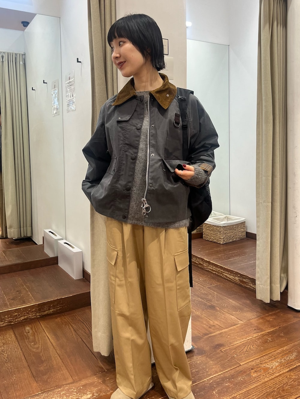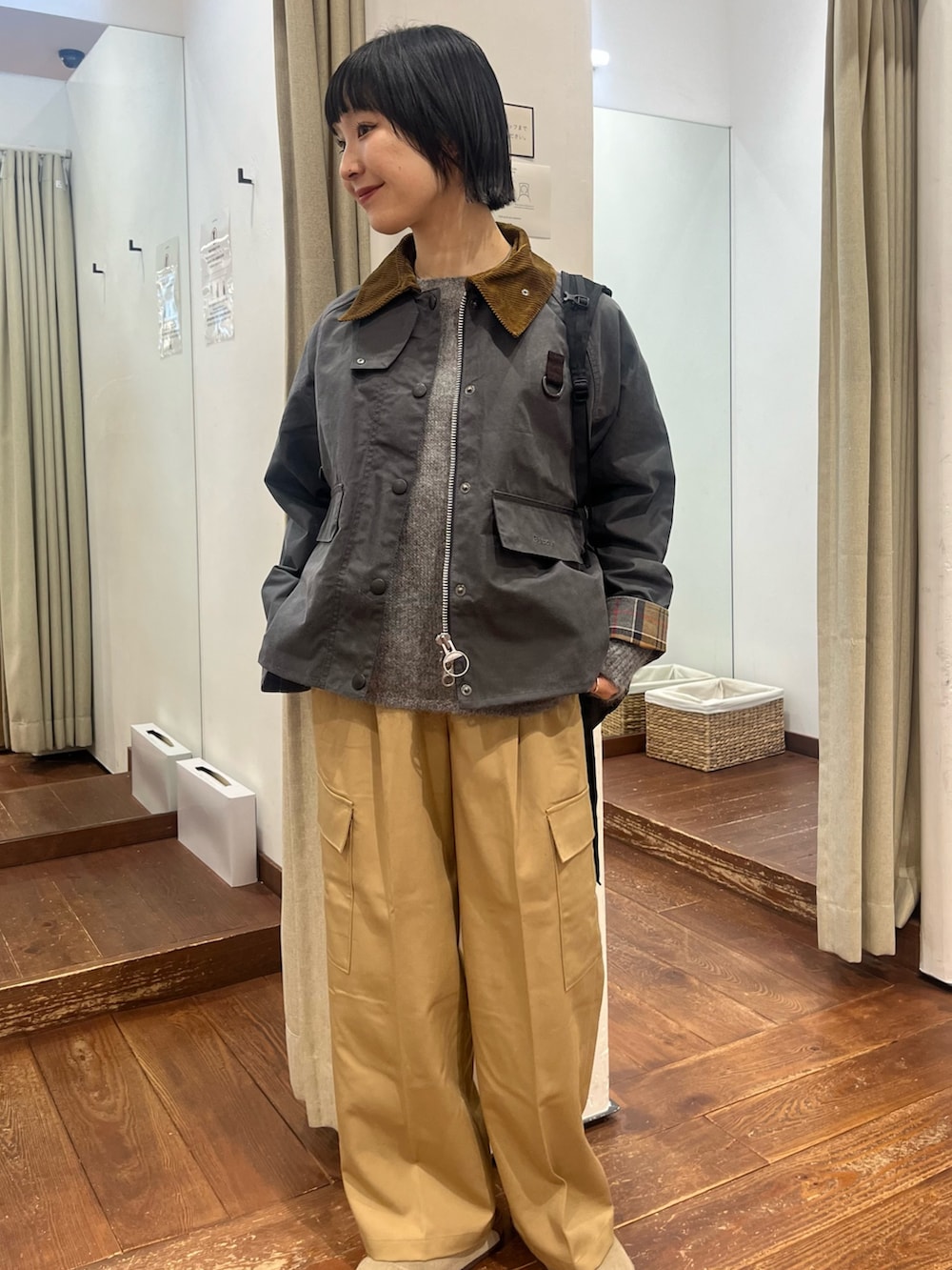 艶感のある素材がカジュアルすぎず、品よくカーゴパンツを楽しんでいただけます。