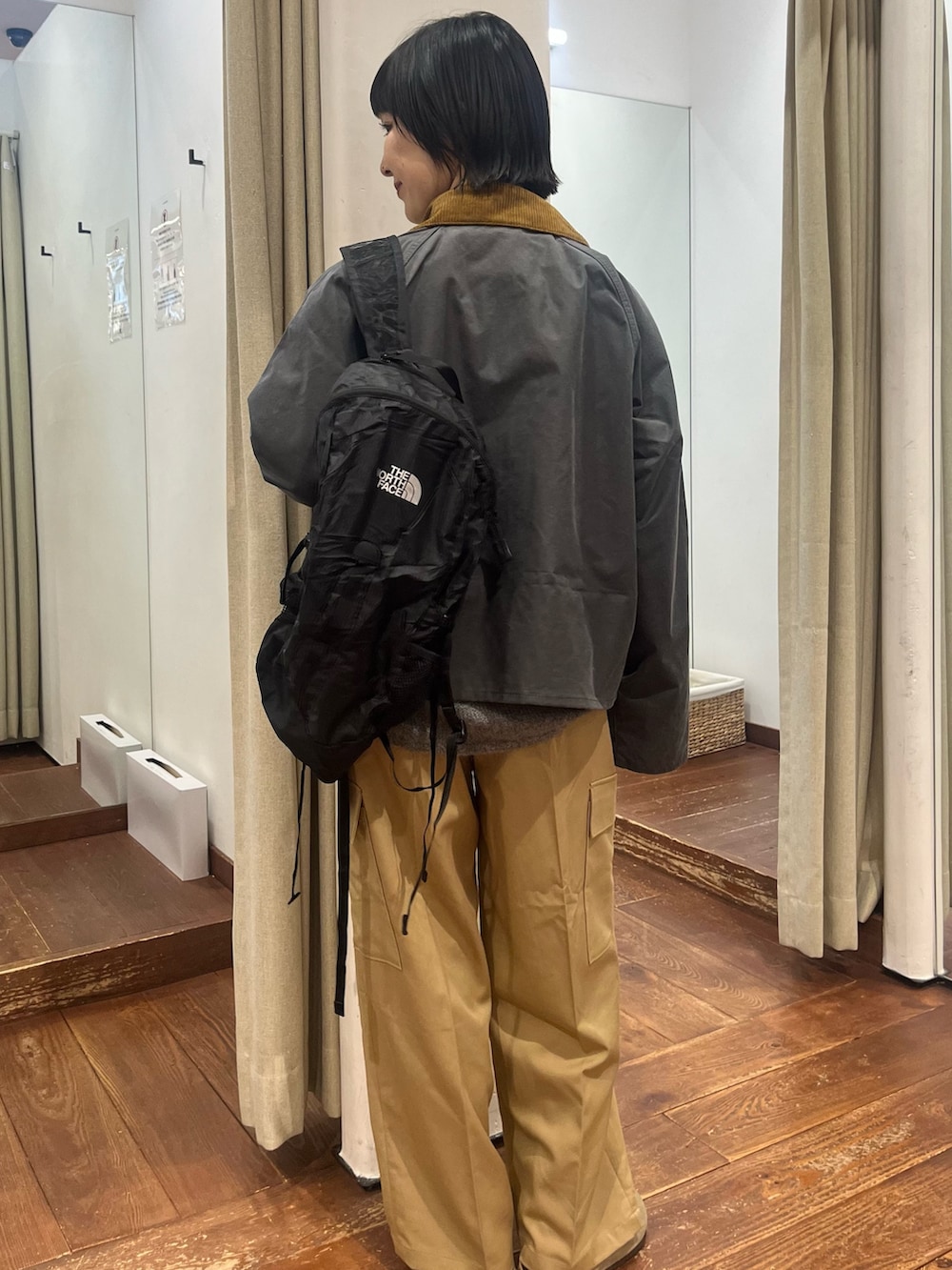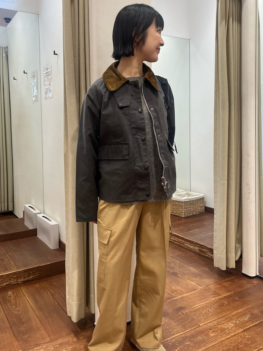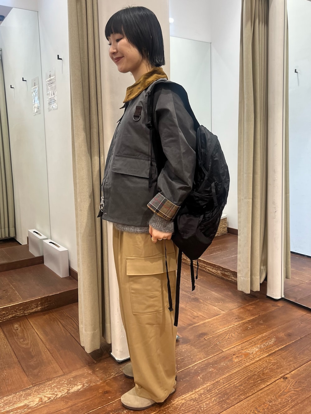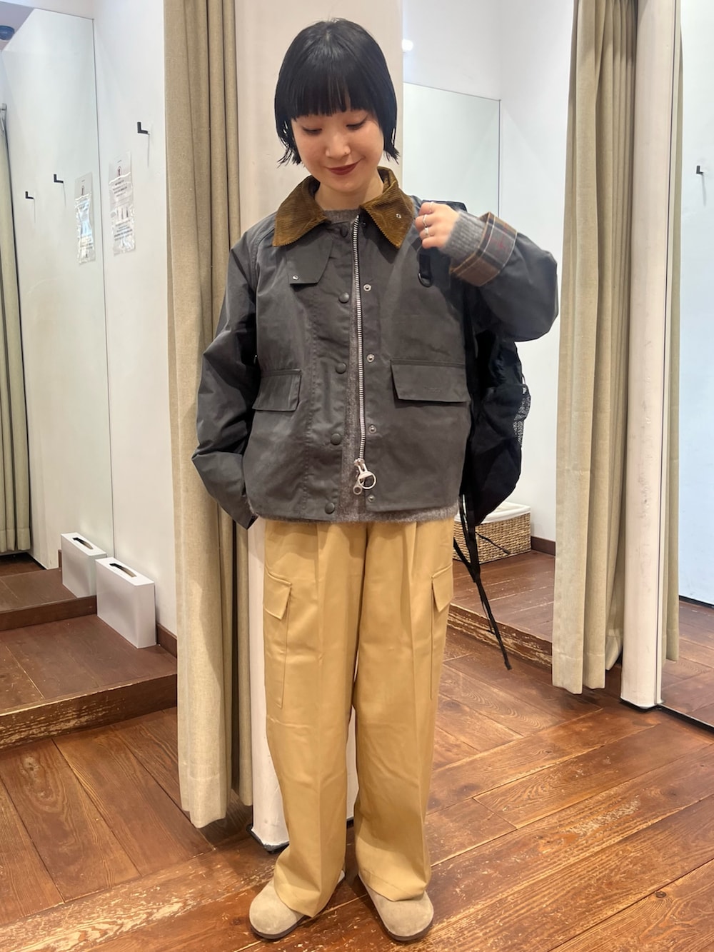 艶感のある素材がカジュアルすぎず、品よくカーゴパンツを楽しんでいただけます。