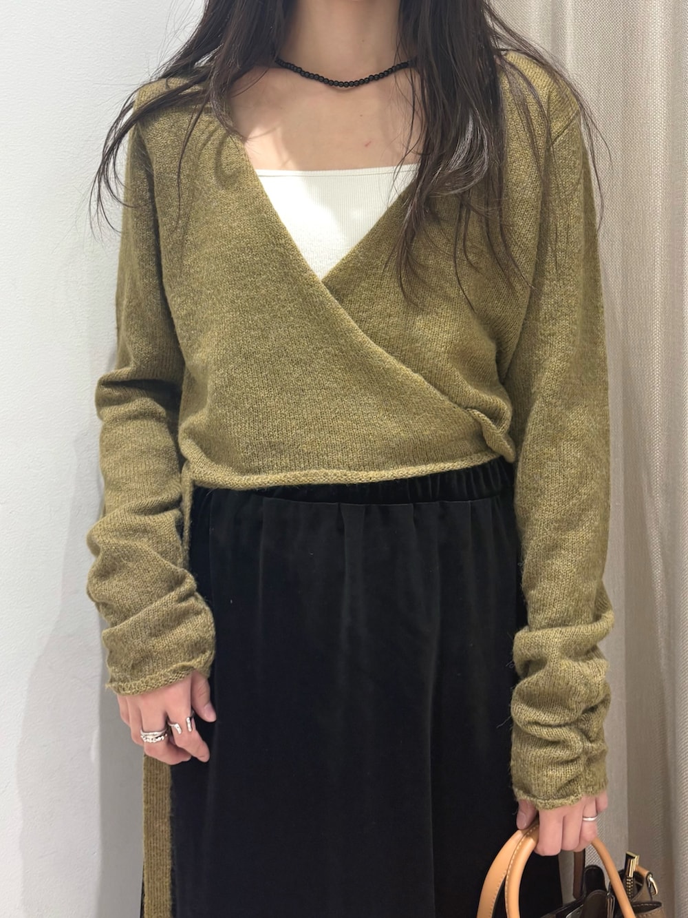 ニットは短丈なので低身長の方でもバランスがとりやすく、ハイウエストのボトムと相性抜群です◎