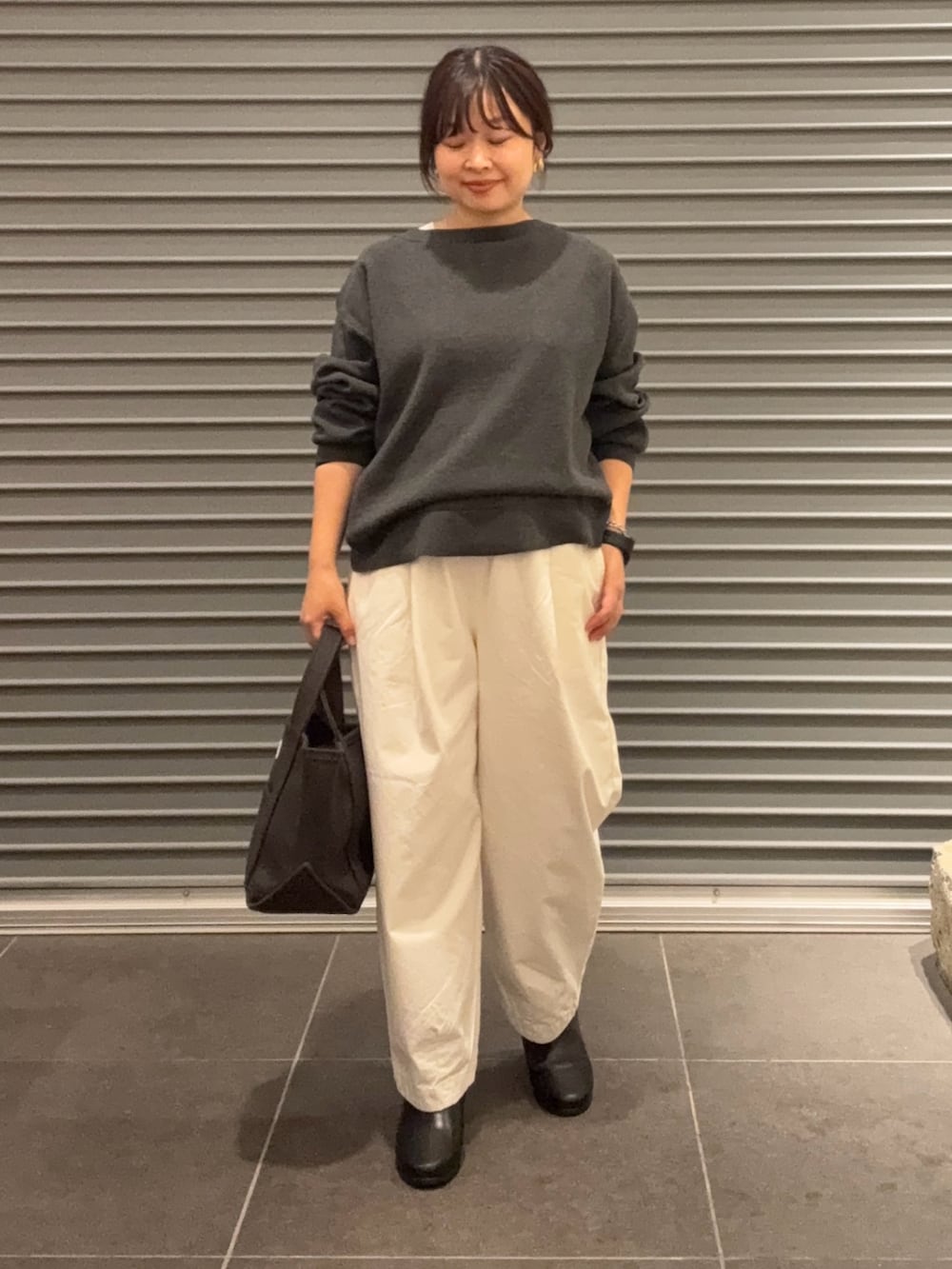 かぐれのクロップドパンツを合わせて秋のモノトーンコーデにしました。グレー×ホワイトは大人っぽい上品な印象が作れておすすめです。