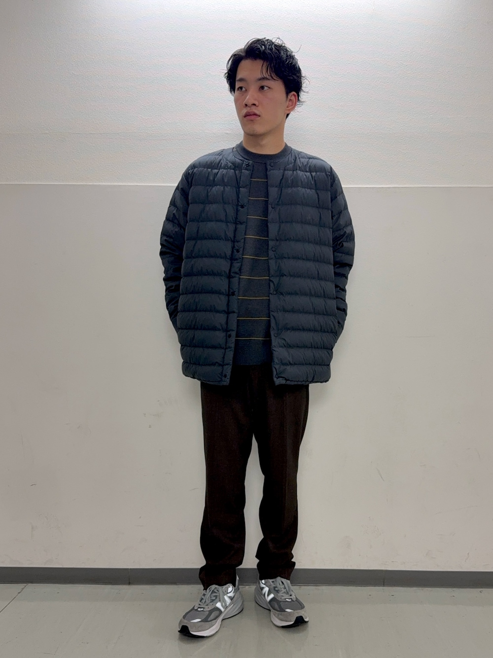 ジャケットは襟がないので、インナーにいろんな合わせができます。ボタンも着脱しやすくちょっとした羽織にもおすすめです。