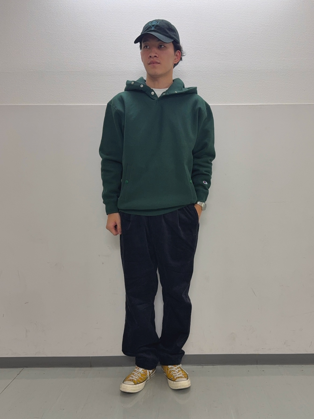 パンツはウエストに紐がついており、楽に履けます。ゆったりとしたシルエットで今っぽくキレイめにもカジュアルにも合わせれます。