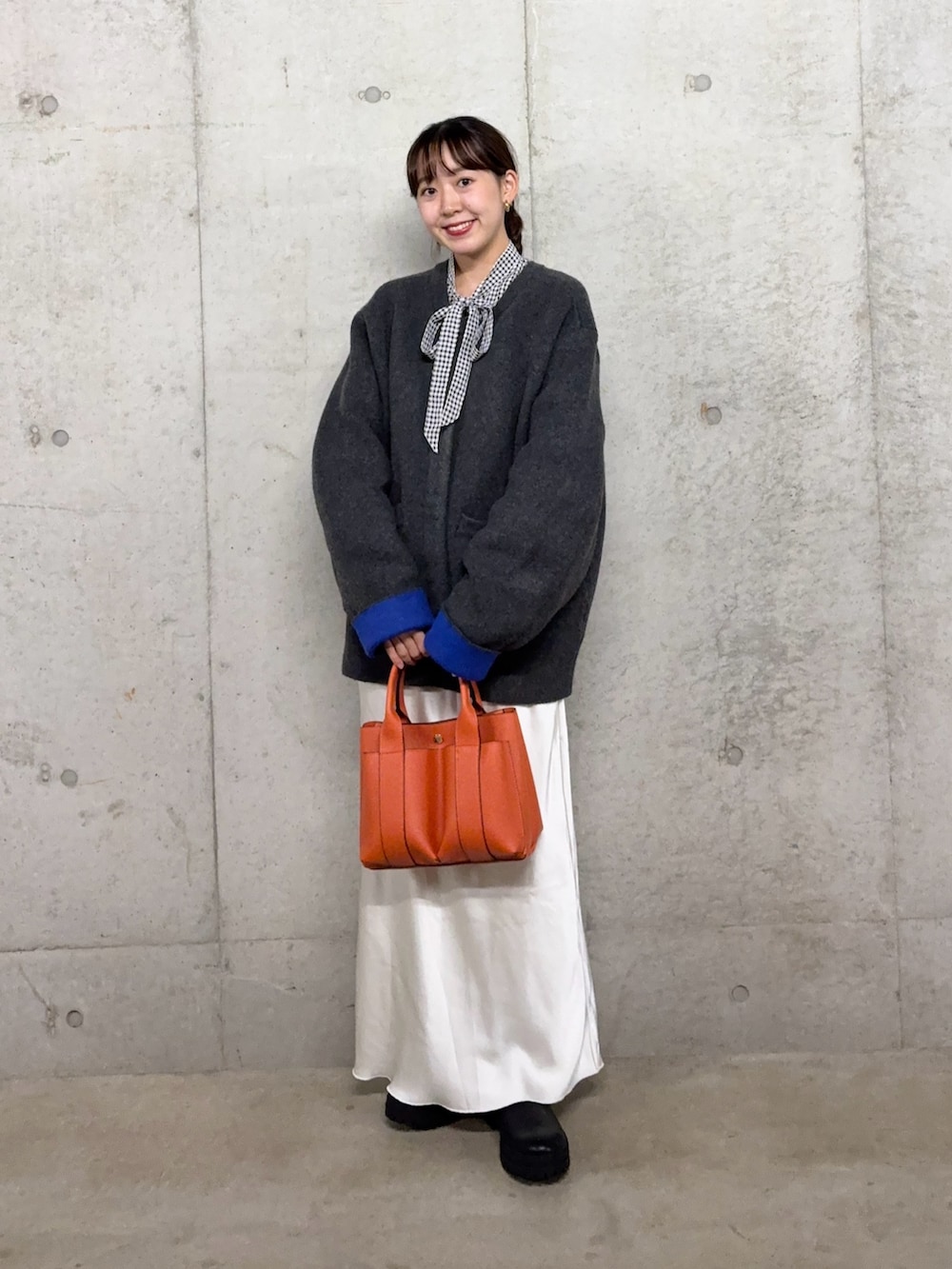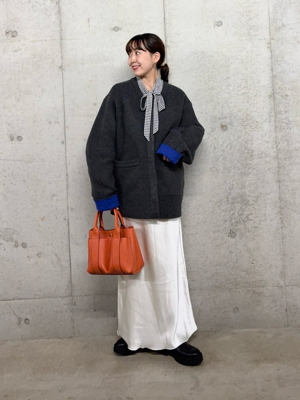バイカラーコートは鮮やかでかわいい😍チャコール×ブルーは大人女子にもおすすめです🙆♀️
