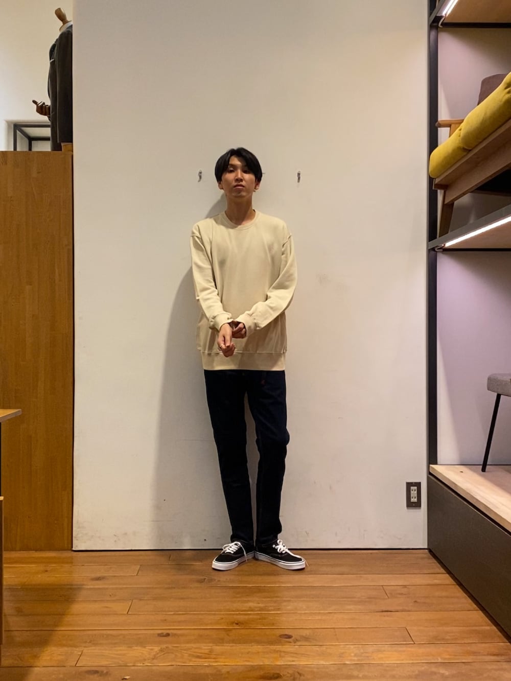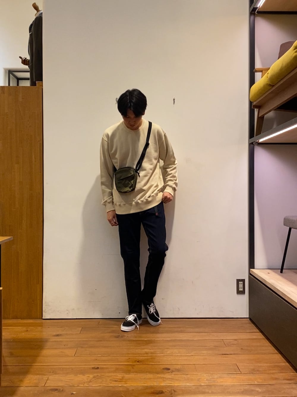 バックデザインが可愛いスウェットを合わせてアウターを脱いでも普通になりすぎずきまるコーディネートにしてみました!