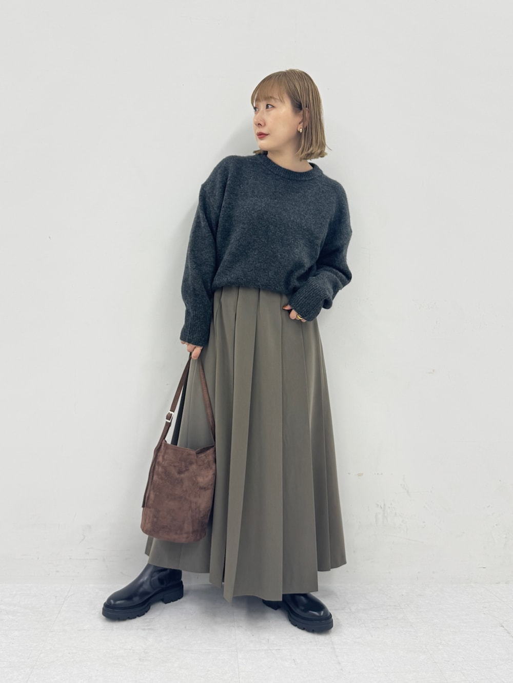 ニットはセットアイテムですが、程よいサイズ感でどんなボトムとも合わせやすいです◎