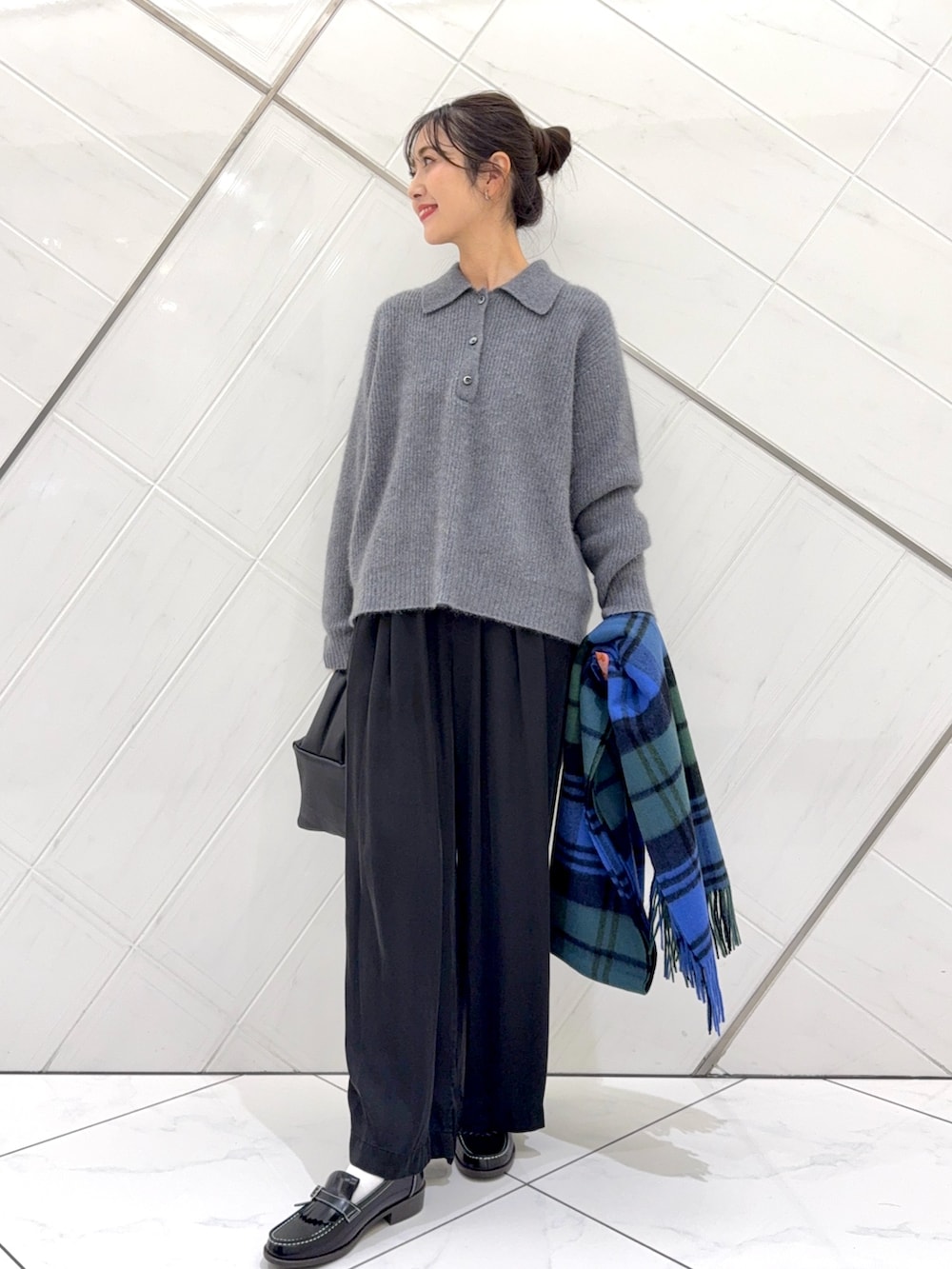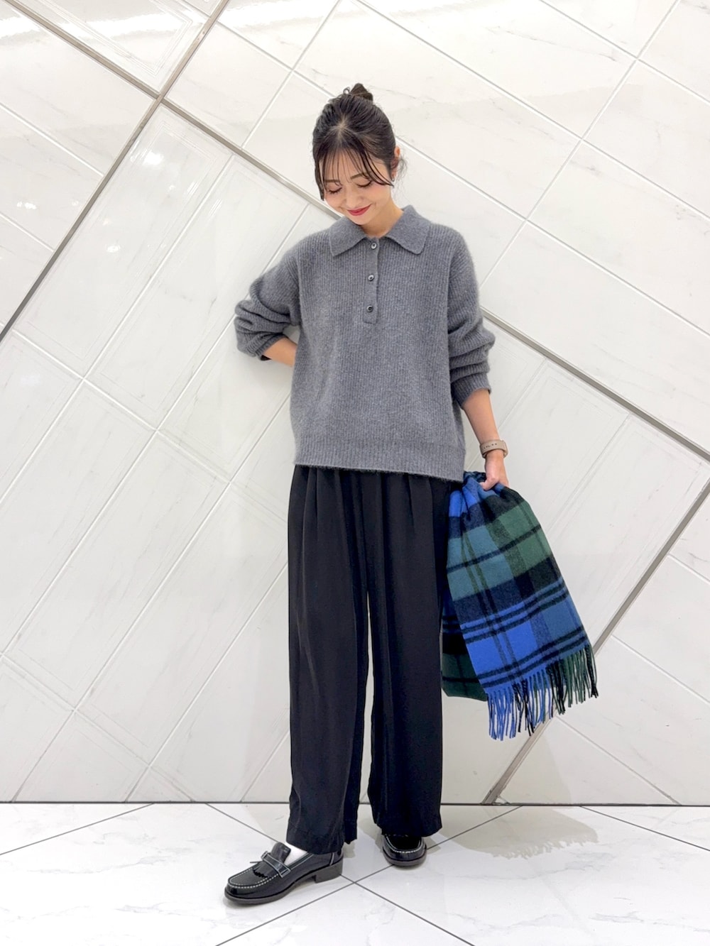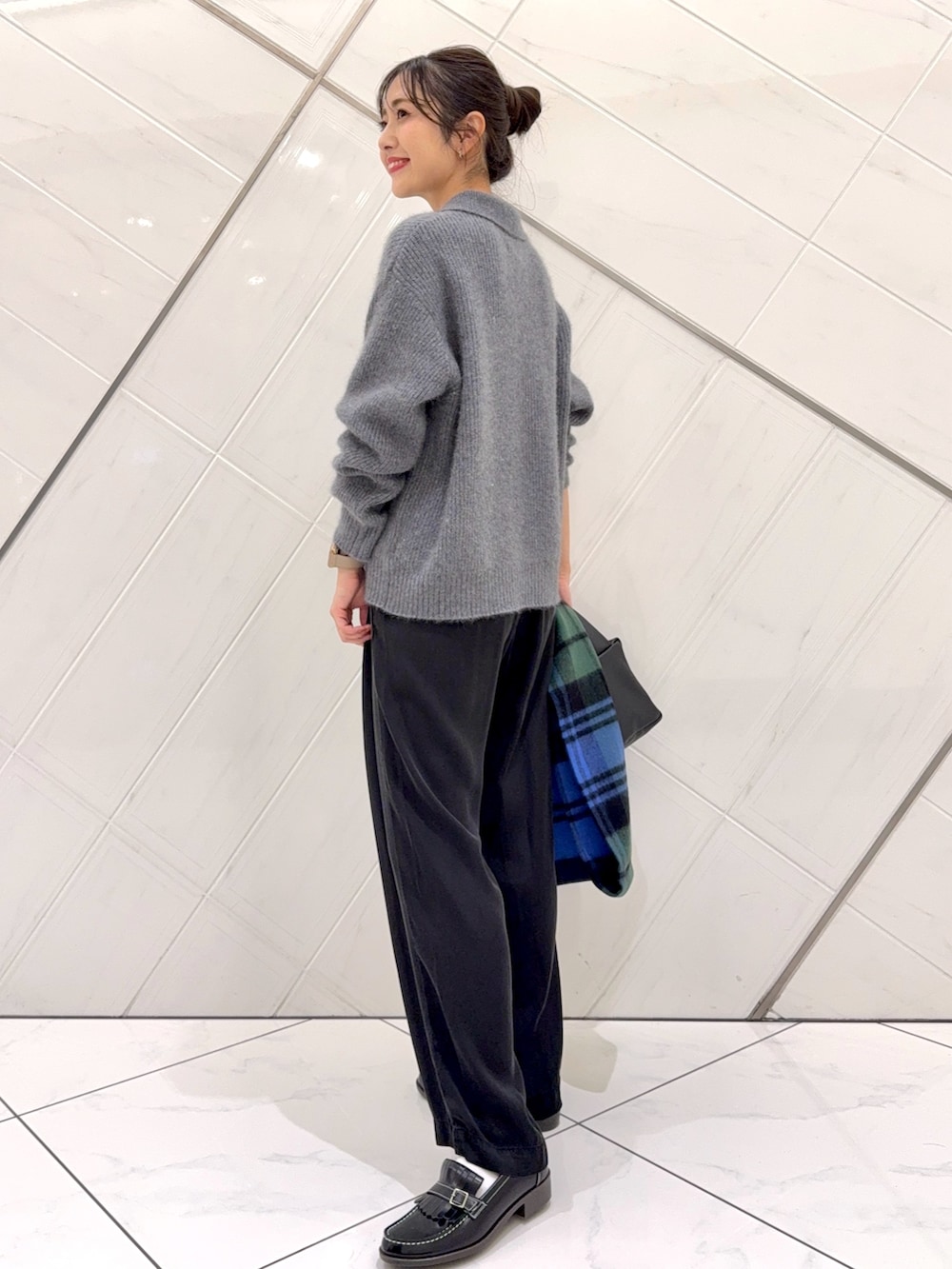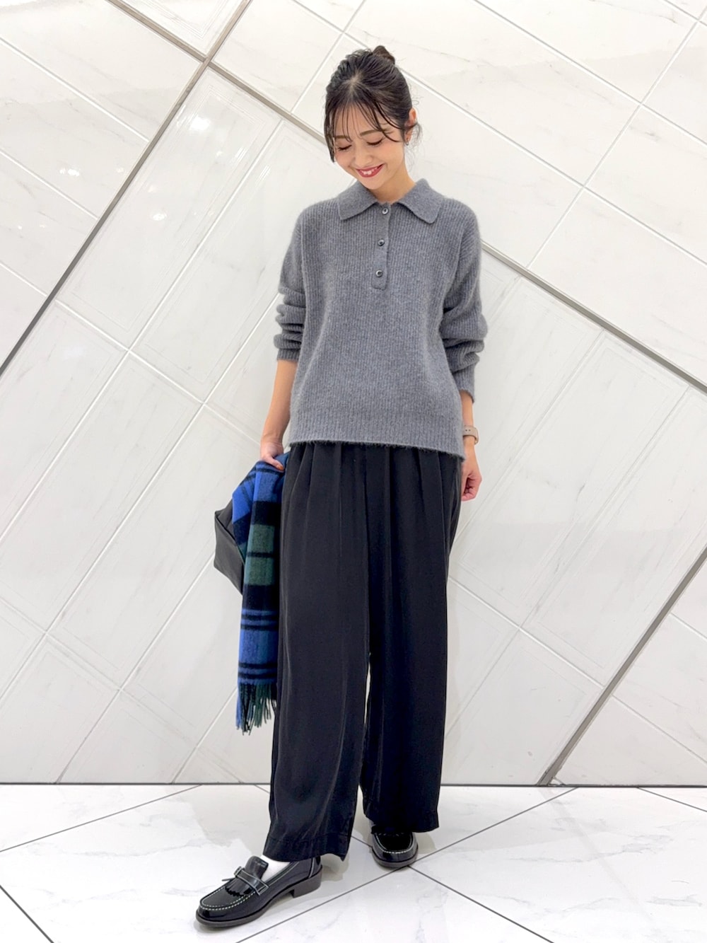 ボトムはかぐれのアイテムで、キュプラ素材で着心地もよく、シルエットもキレイなのでおすすめです。