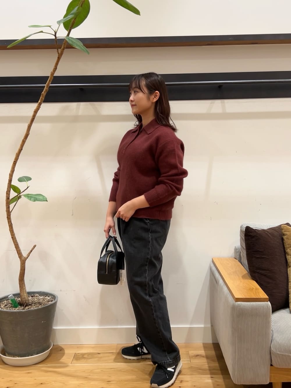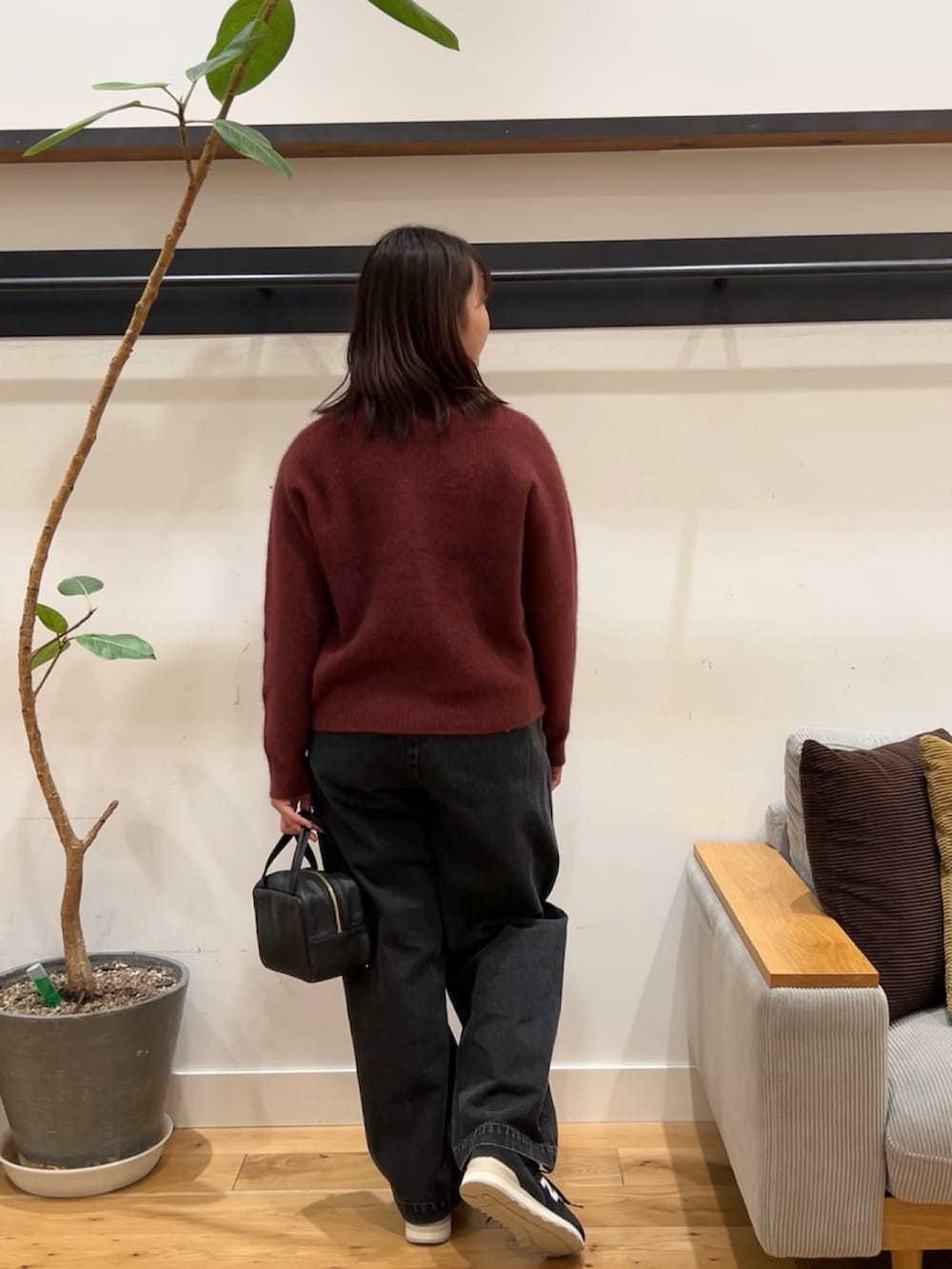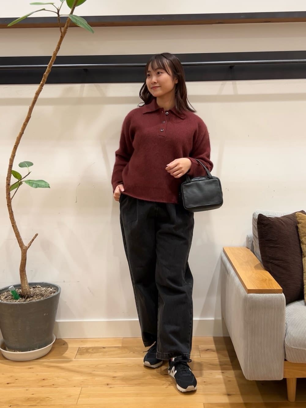 ボルドーのニットは首元の引き締まったシンプルなデザインに、深みのあるレトロな色合いがかわいいアイテムです。FOX混なのでふわふわな触り心地でチクチク感なく着用できました。