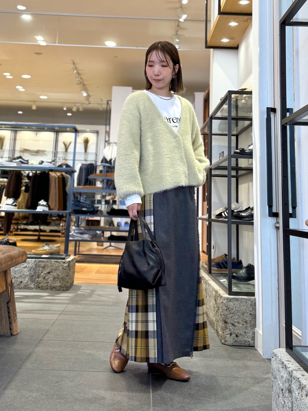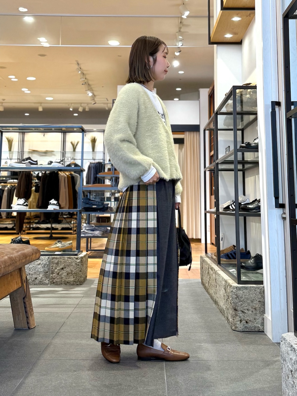 オニールの別注キルトスカートは、無地とチェックを組み合わせいて甘すぎないのがポイント。大人かわいいスタイルに◎お出かけに気分を上げたい時に是非着てほしいアイテムです!