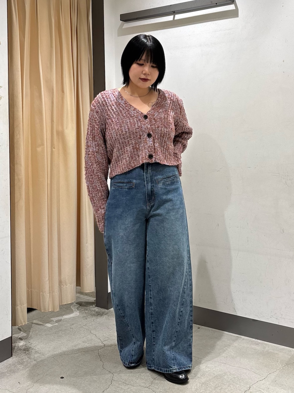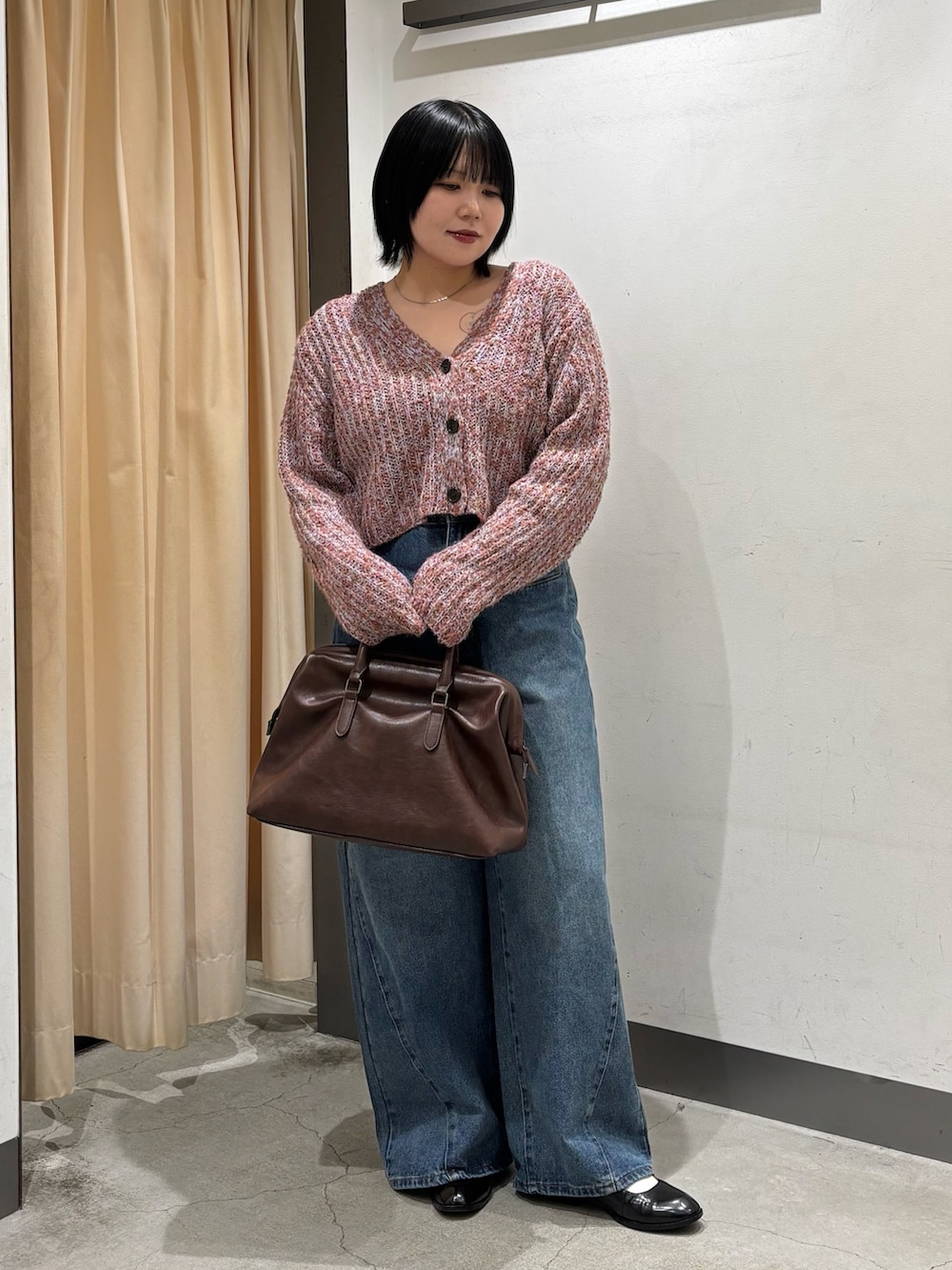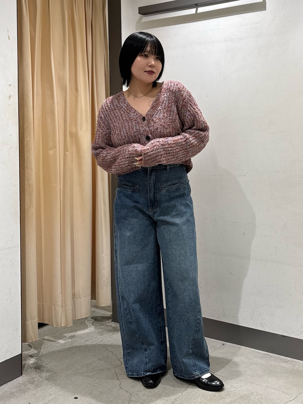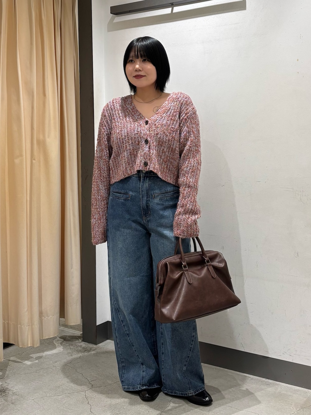着てみた感じ、ニットの生地自体そこまで分厚いといったこともなく、広めに開いた首元のVネックがスッキリ見えも👌🏻ショート丈で上重心に見えやすいのでワイドなシルエットのボトムや厚底野ブーツなど下に目線を持ってくるアイテムと合わせると前身のバランスが取れるので、骨格ストレートさんは参考にしてみてください₍ᐢ ɞ̴̶̷.̮ɞ̴̶̷ ᐢ₎