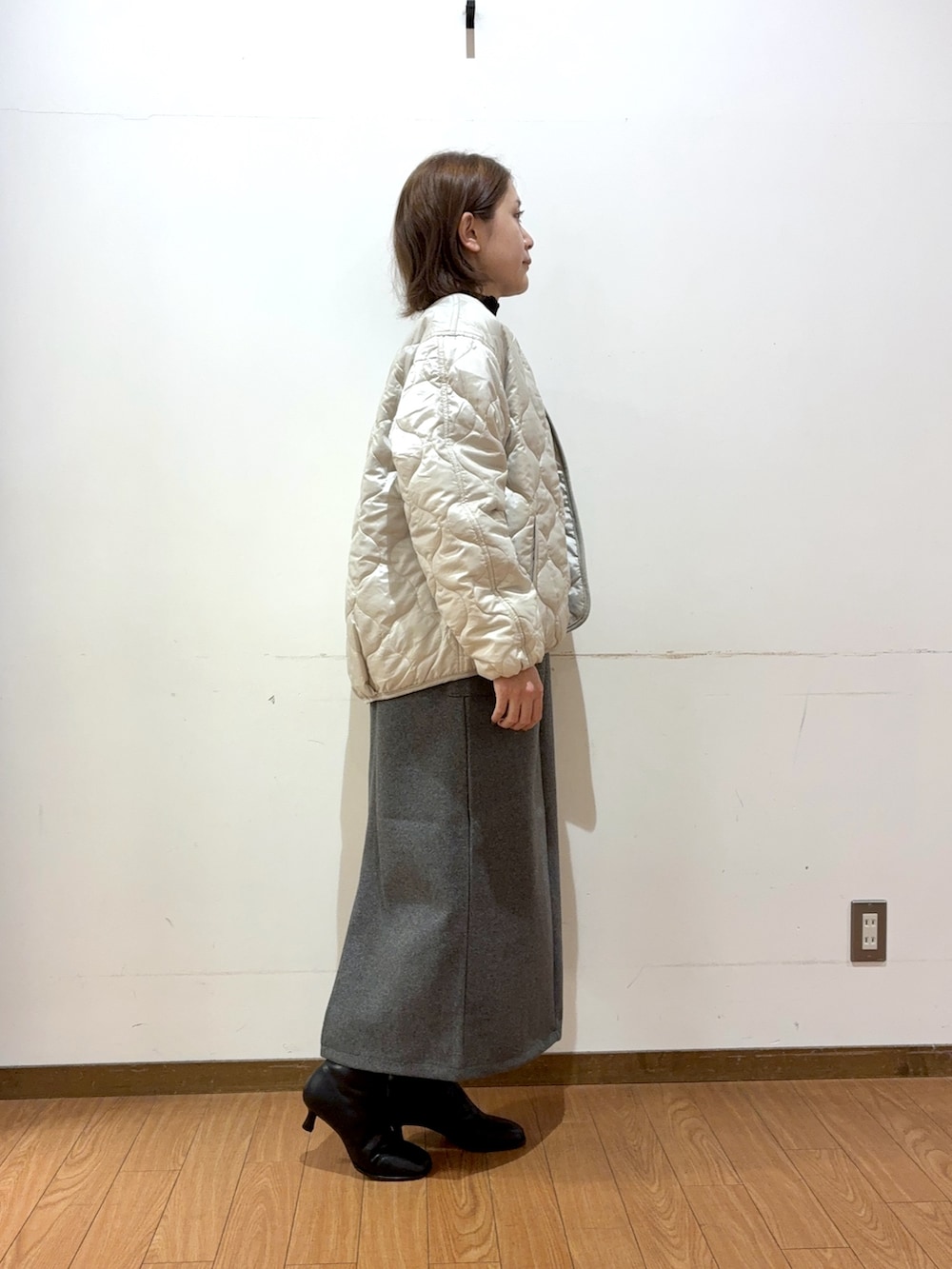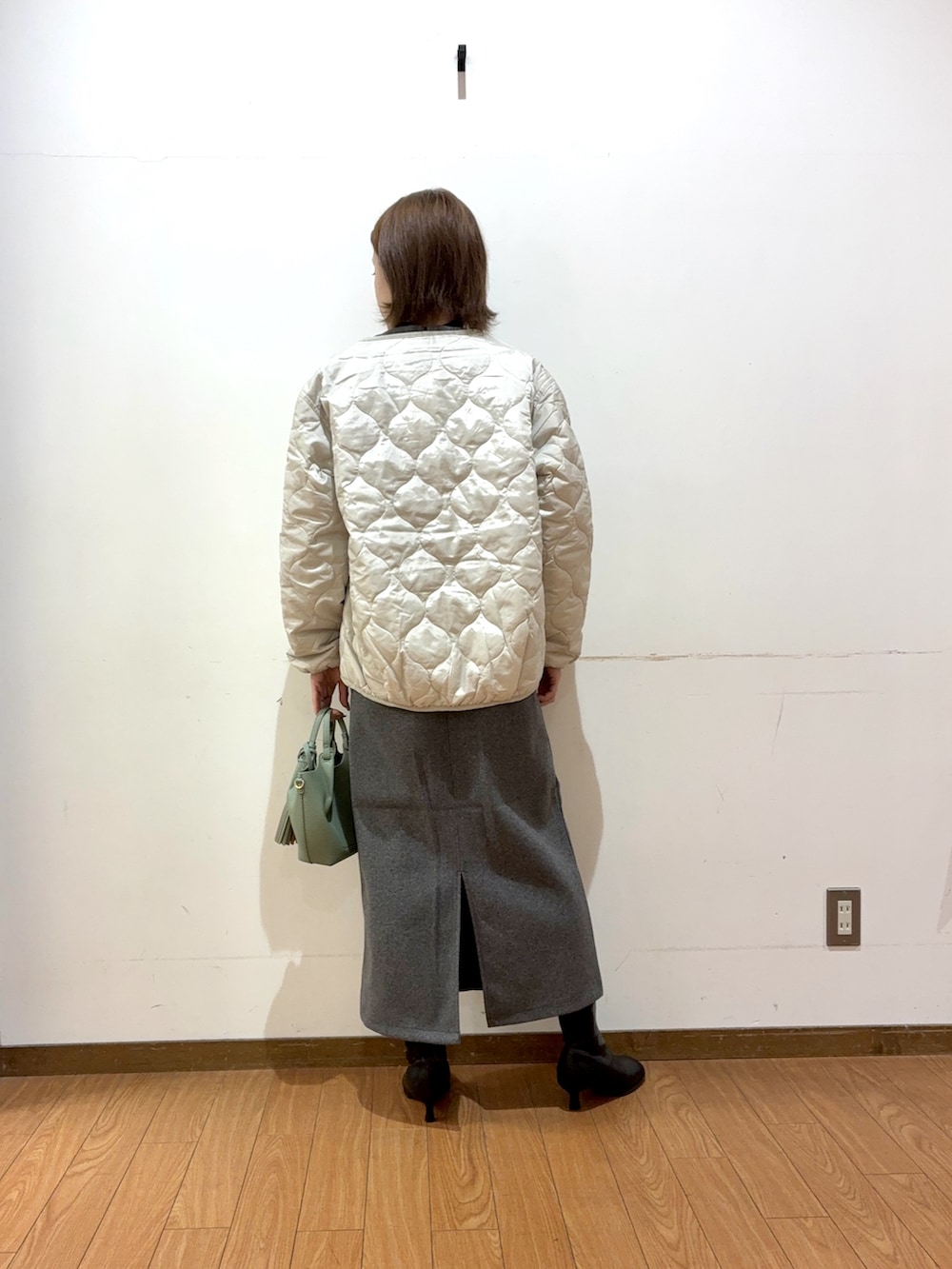 ゆったりしたサイズ感なので、厚手のニットやスウェットの上からでも楽に羽織れます♪丈感は後ろがやや長めになっているのでヒップラインが隠れる長さがあります^_^