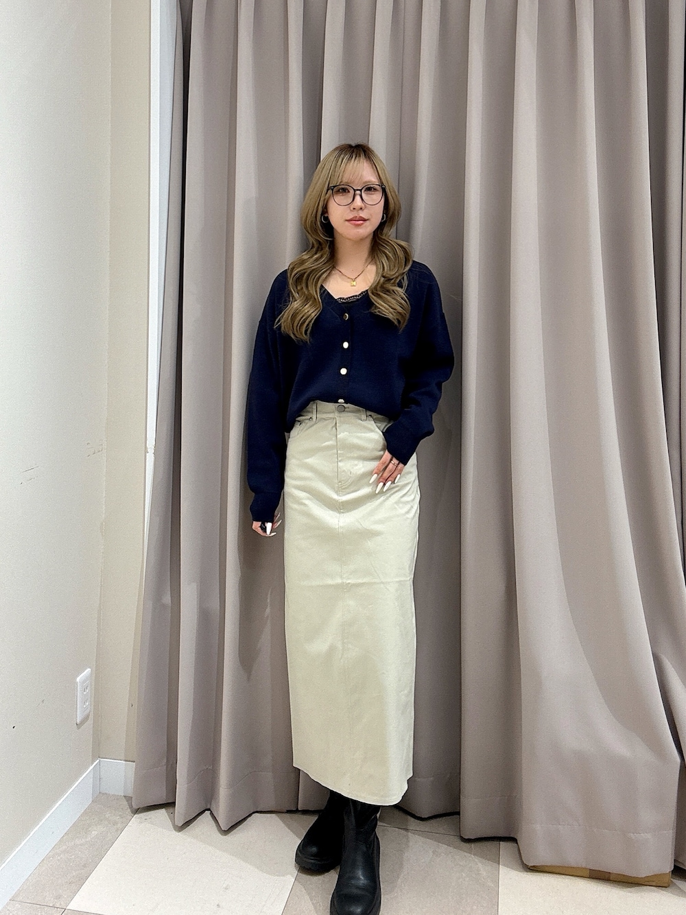 インナーにはカシミヤと綿の薄地のニットを。カシミヤなので薄地でも保温性抜群の温かいニット。