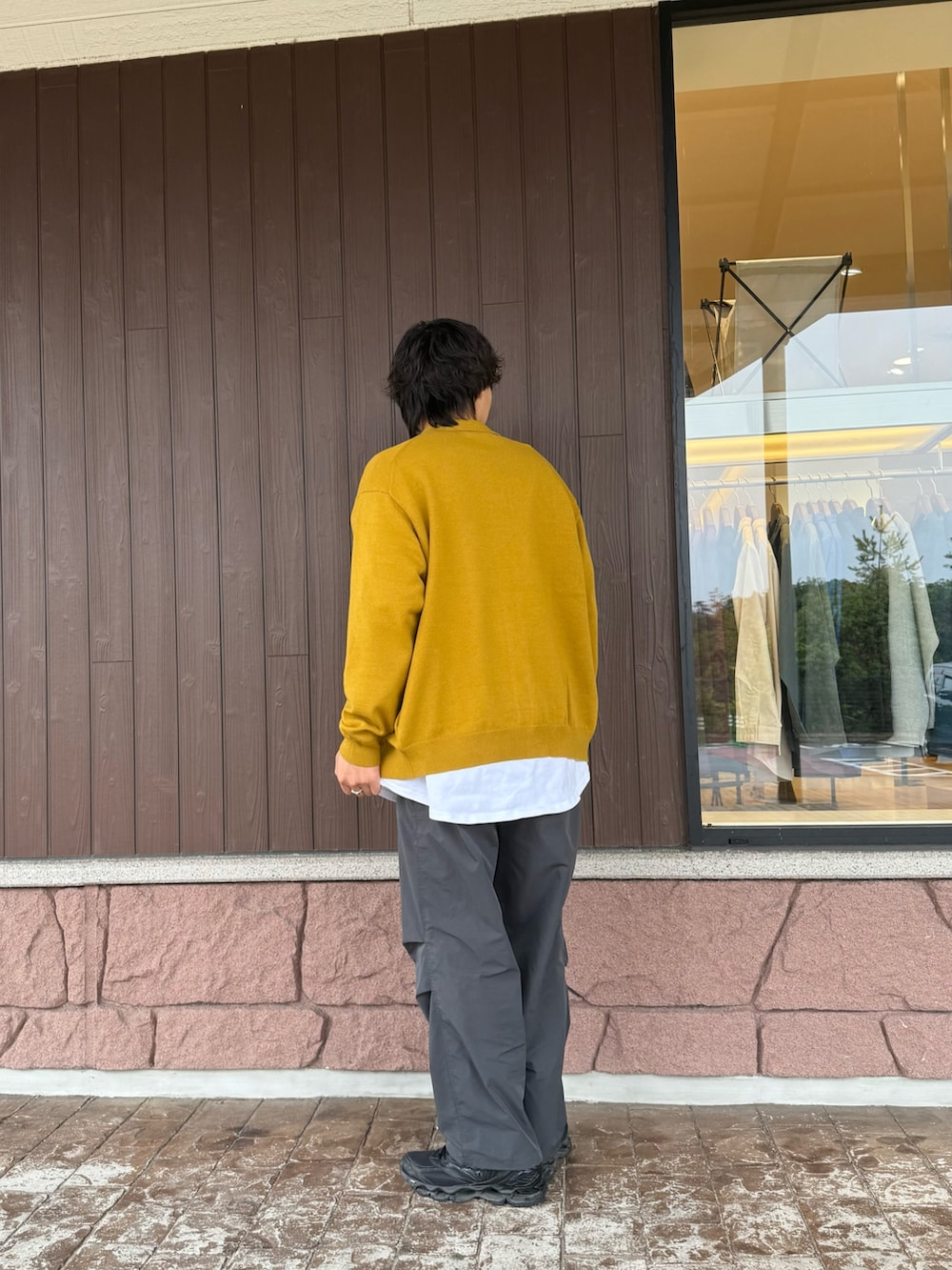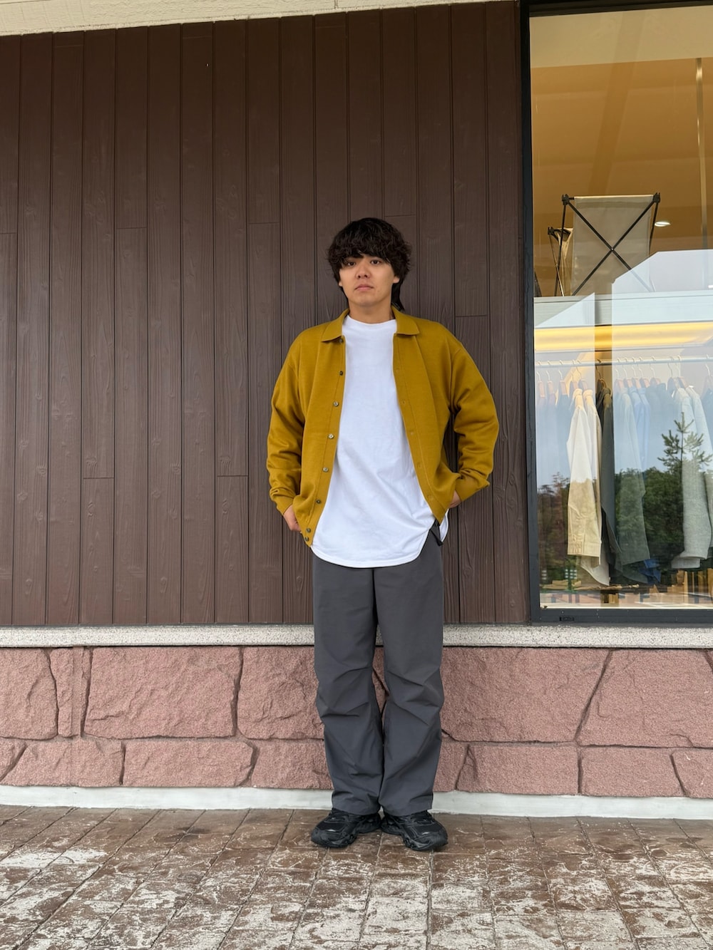 鮮やかな発色の200日ニットを使って、シンプルですがポップなスタイリングにしました。
