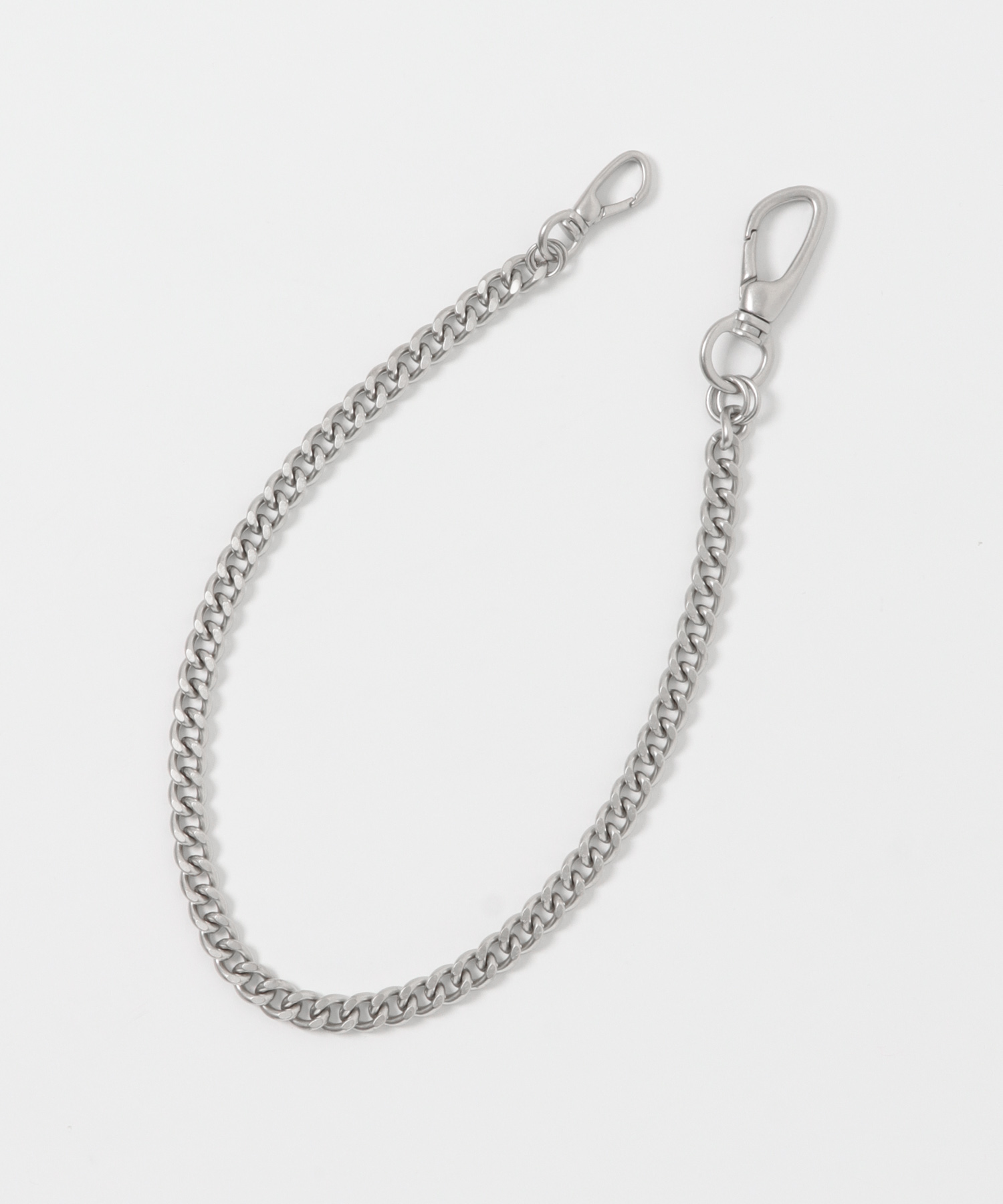 パンツはストライプデザインのストレート型にチェーンを付けてキレイめに。