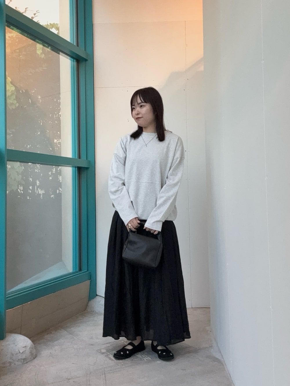 スカートは直接見ると上品な光沢感があり、ギラギラしてないので大人の方に着こなしていただきやすいと思います!