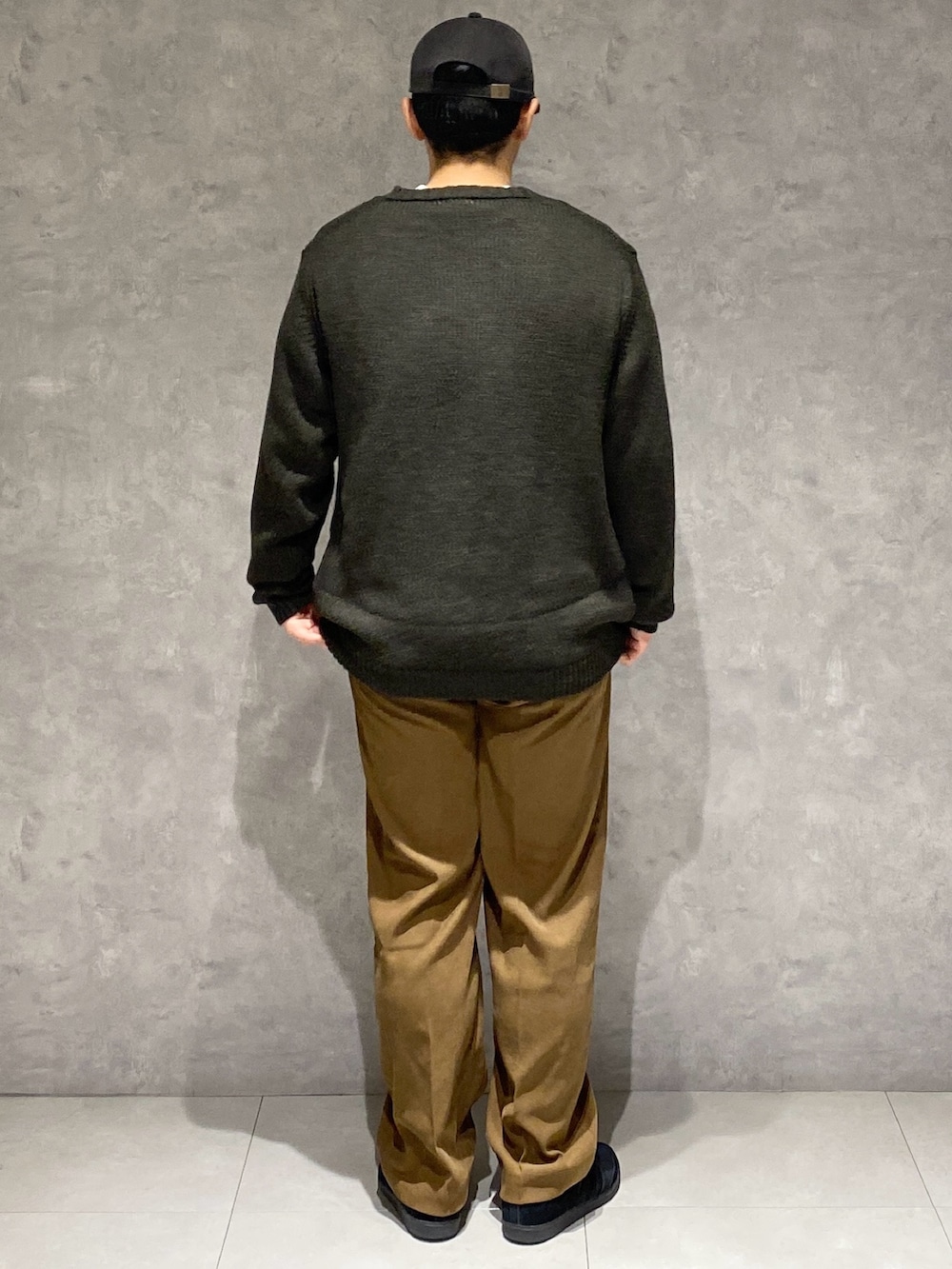 今回使用したニットはVネックが特徴で,tシャツと合わせてもよし,シャツ系と合わせてもよしな重ね着万能アイテムになります^^