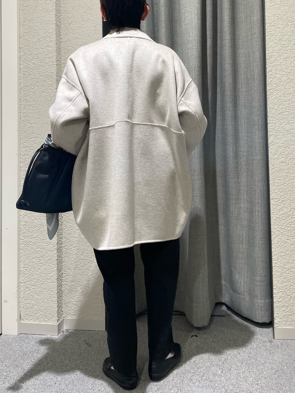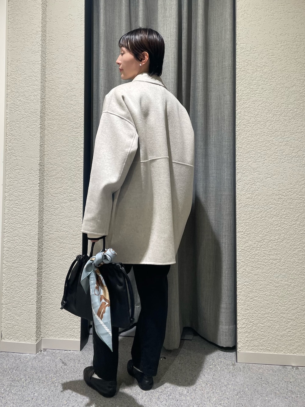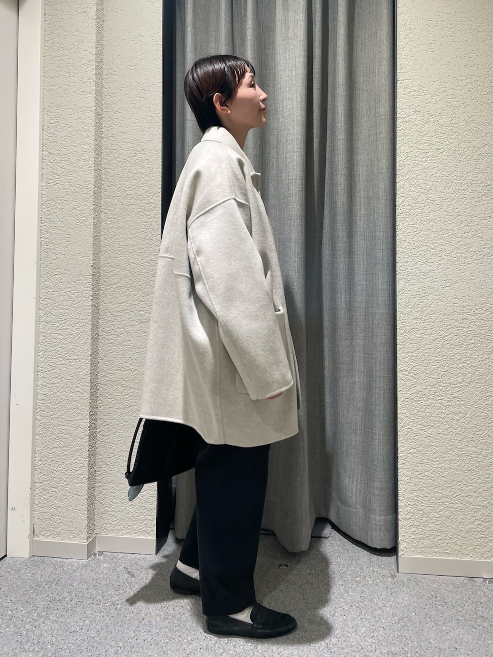 毎年人気のウールステンカラーショートコートの新色OATMEALにボーダーを合わせた秋冬だけど爽やかさのあるdailyスタイルに🛳️