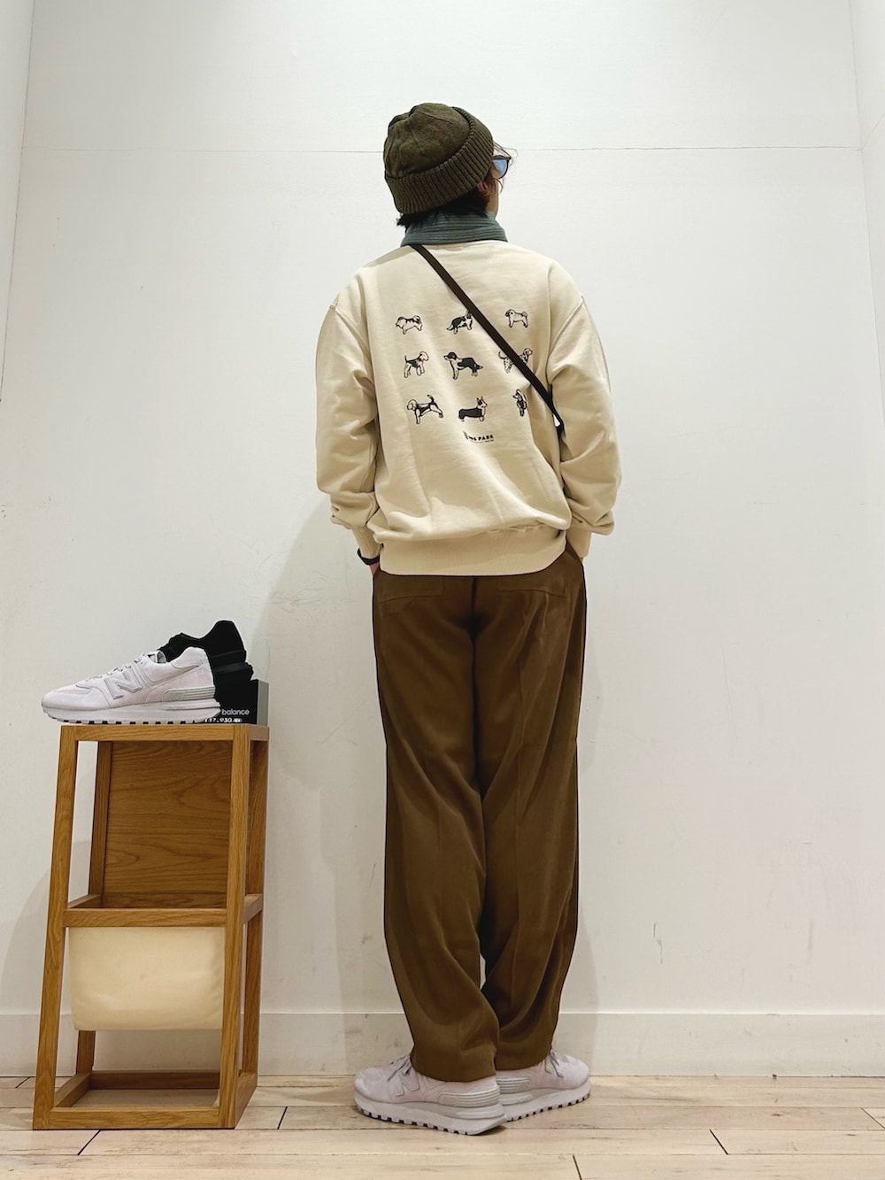 タケシワダさんが手掛けるドッグ🐶プリントは可愛らしいだけでなく、愛らしさ。そしてバックプリントに白黒のみで描いた事でさりげないアクセントで楽しめるスウェットになっています♪