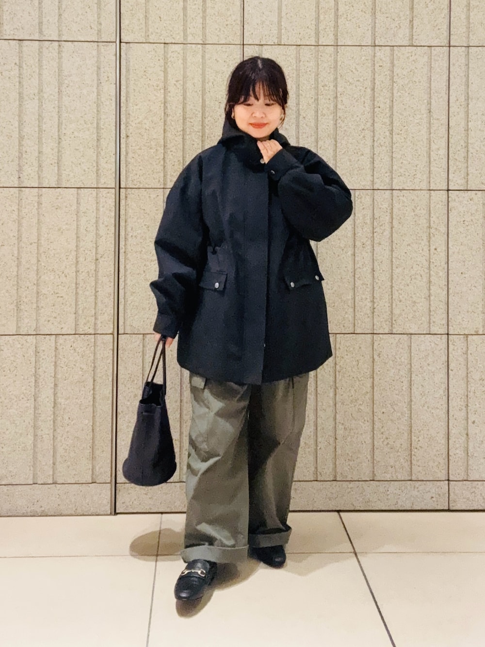 肌寒い日にぴったりな秋冬アウターです。裏地が起毛素材なのでとても暖かく、ウエストはドロストコードで絞れるのでカジュアルキレイめどちらにも着回せるデザインです。
