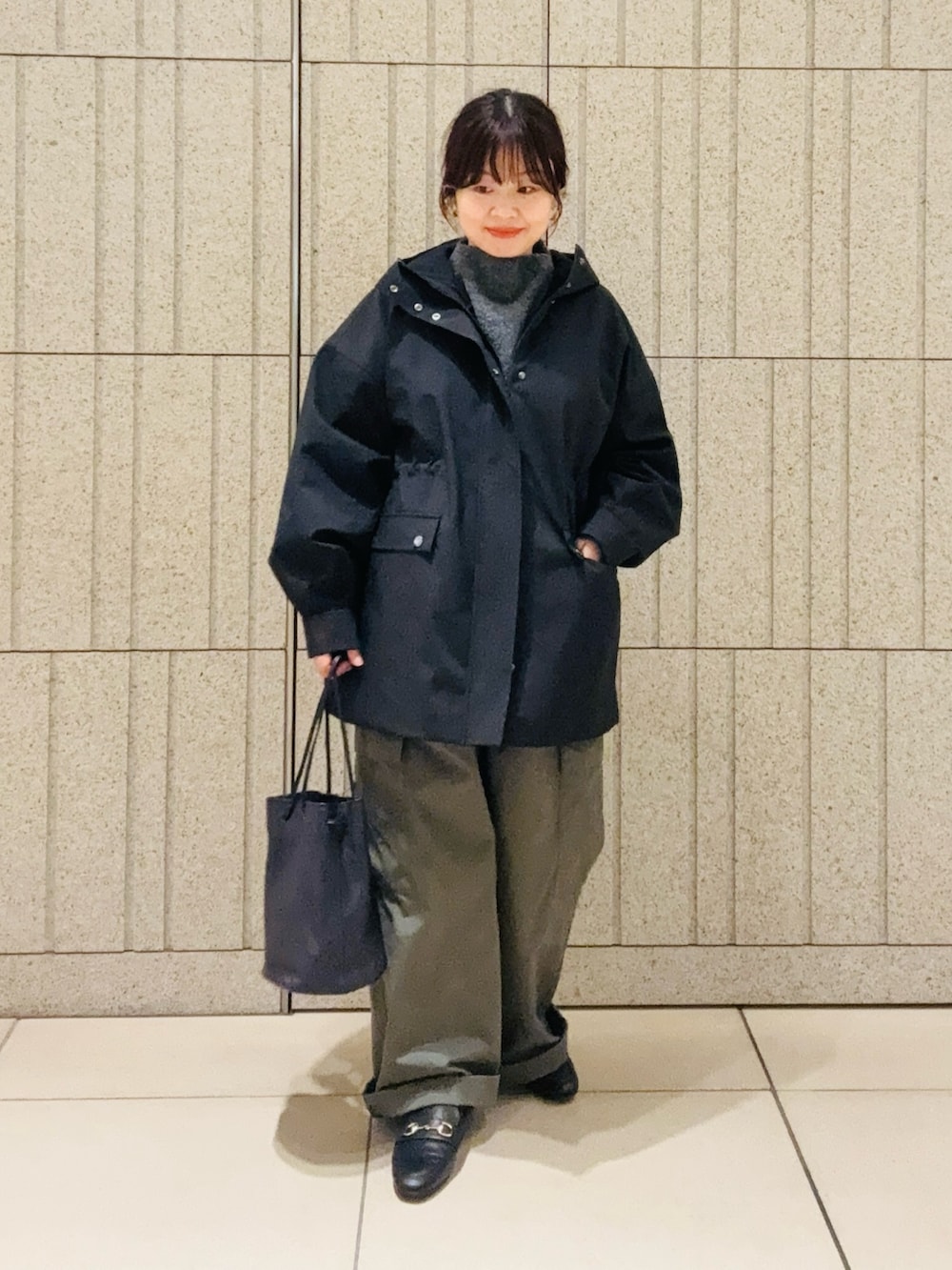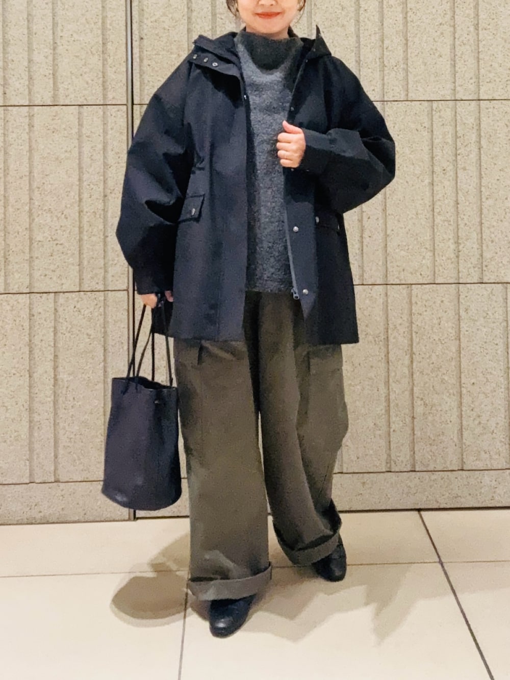ゆったりシルエットなので厚手のニットもしっかり着込めるので、秋冬〜春先まで長く着れるのも嬉しいポイント。