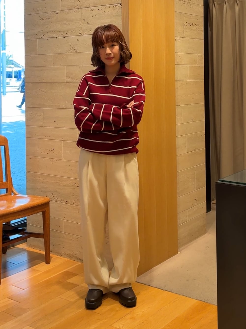 Opera Sportの新作ニットプルオーバー、着やすい赤色に控えめなボーダーでこれ着てるだけで可愛い。。。