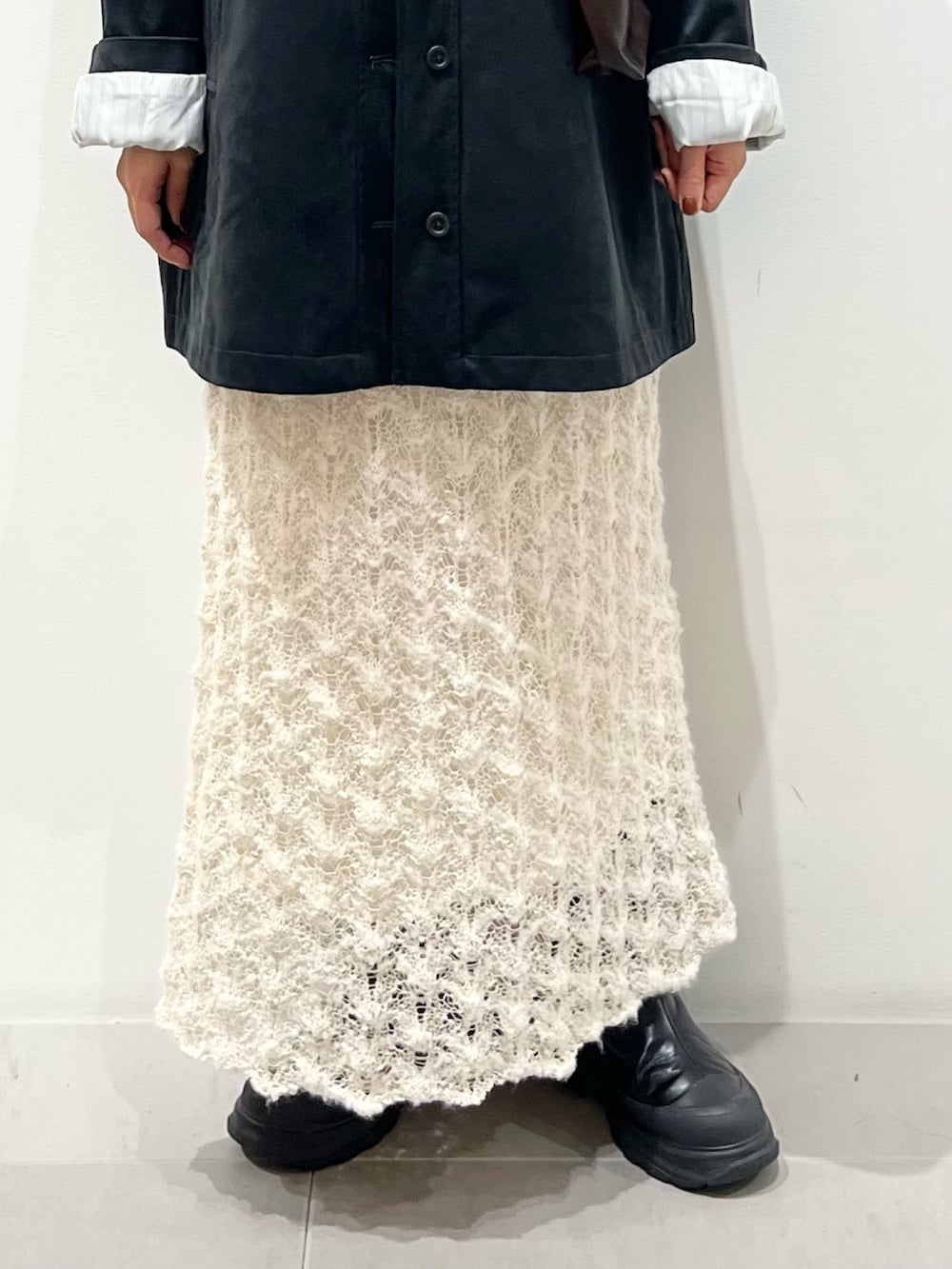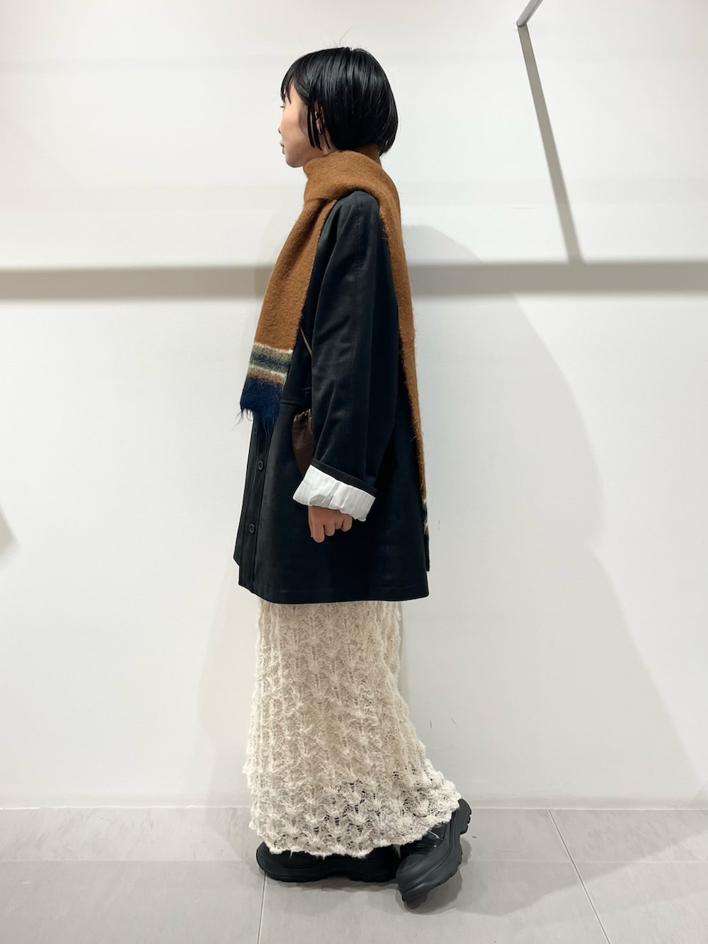ニットのスカートは裏地別なので、ニットスカート+デニムでレイヤードスタイルも楽しめます。肌寒いとき、旅行先にはストールがあると安心です。