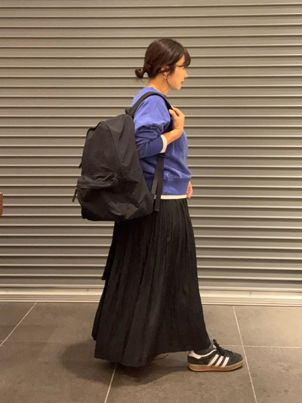 ランダムプリーツスカートにリュック合わせで休日カジュアルコーデにしました。