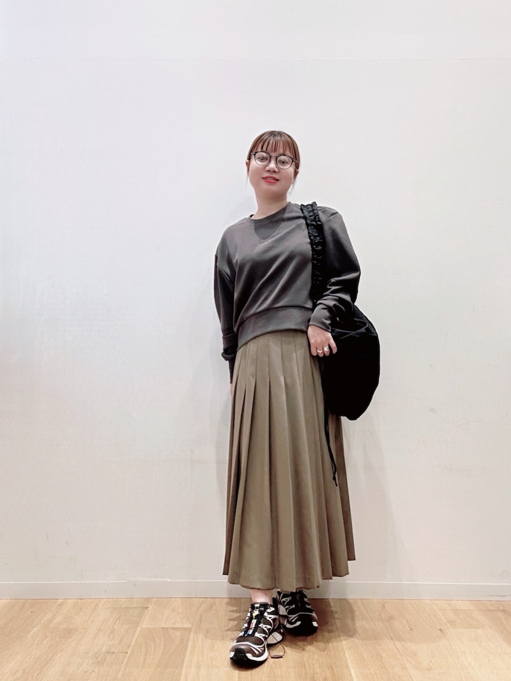 着丈が短めなスカートはプリーツがさりげなく大人カジュアルにコーディネートできます🎯🎯
