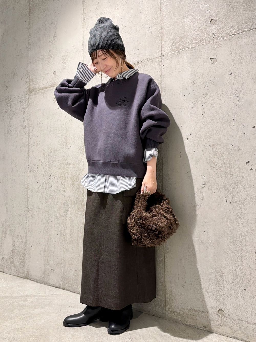 スウェットのようなカジュアルさと、ニットならではの品の良さを併せ持つ優秀なアイテムです。
