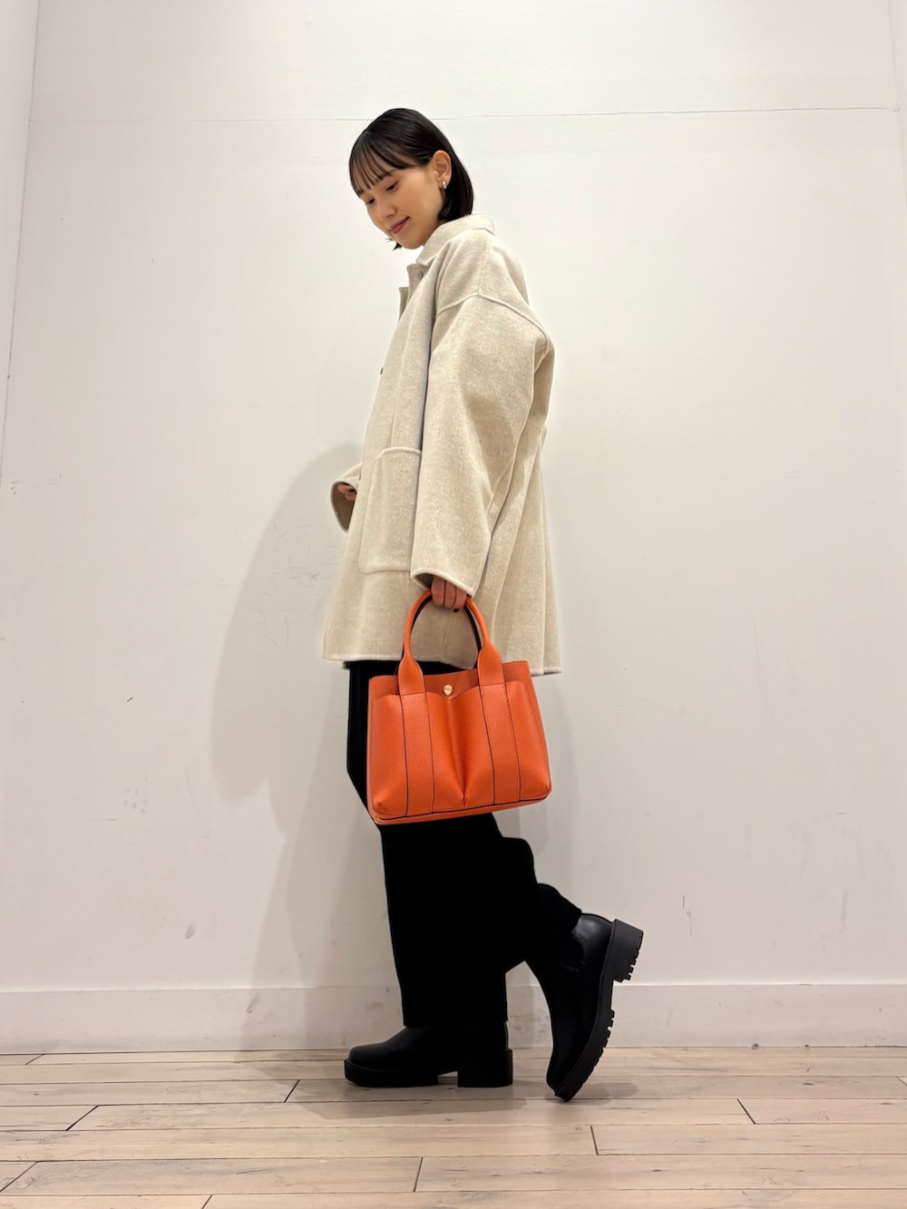 質感がとっても綺麗なんです! 軽くて温かいかぐれのステンカラーコート、要チェックです👏