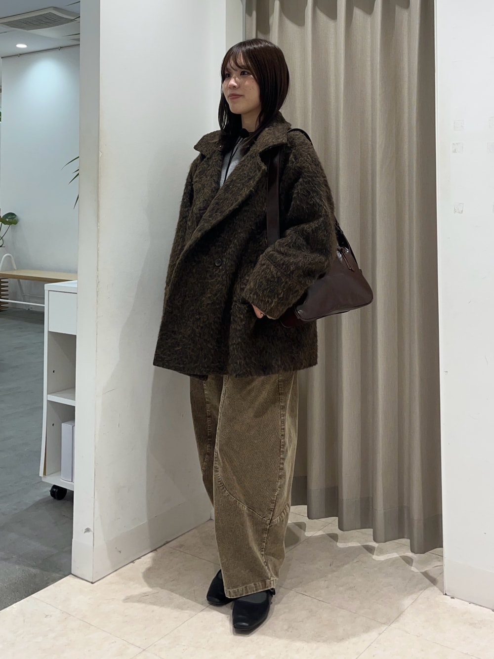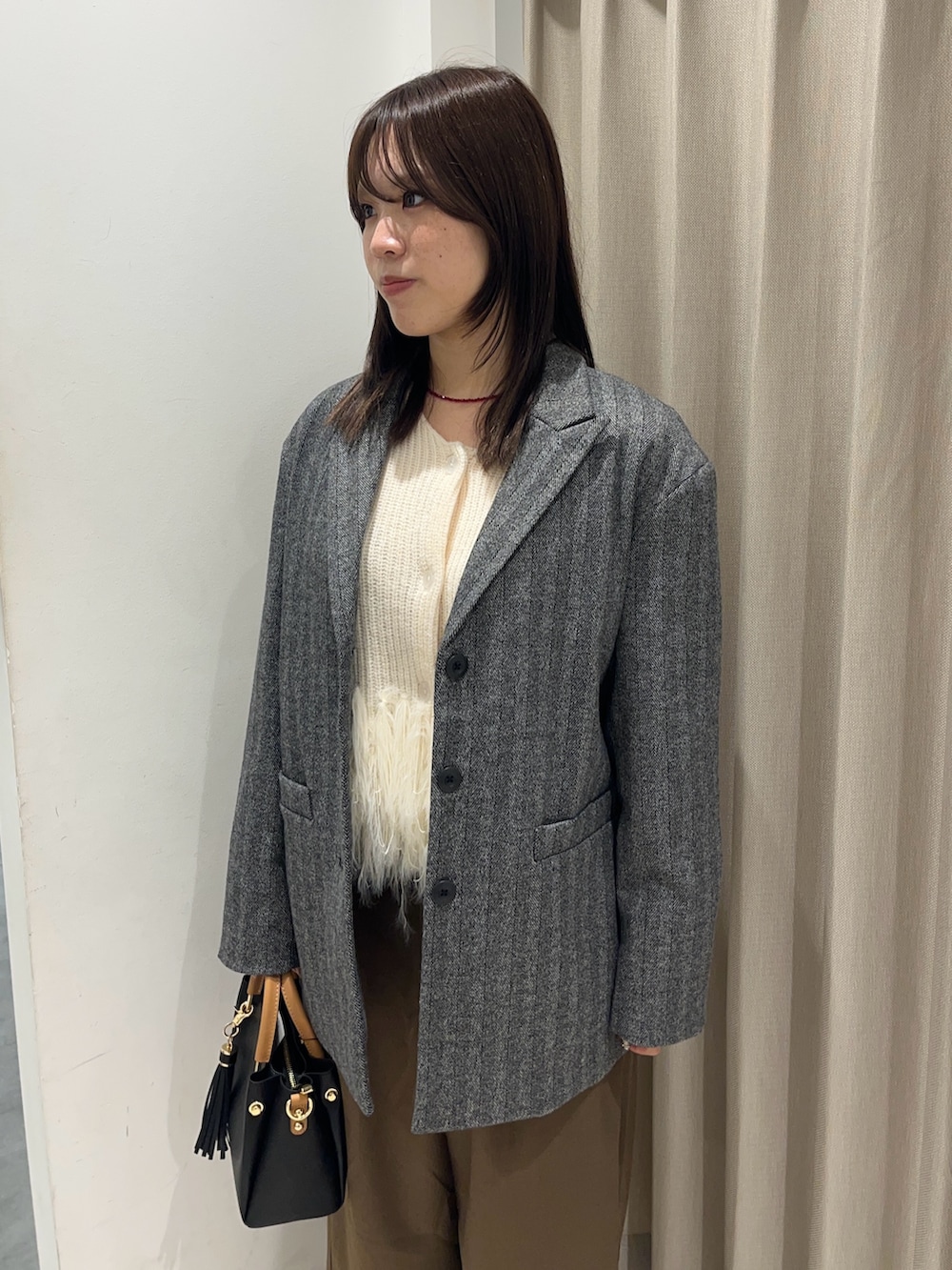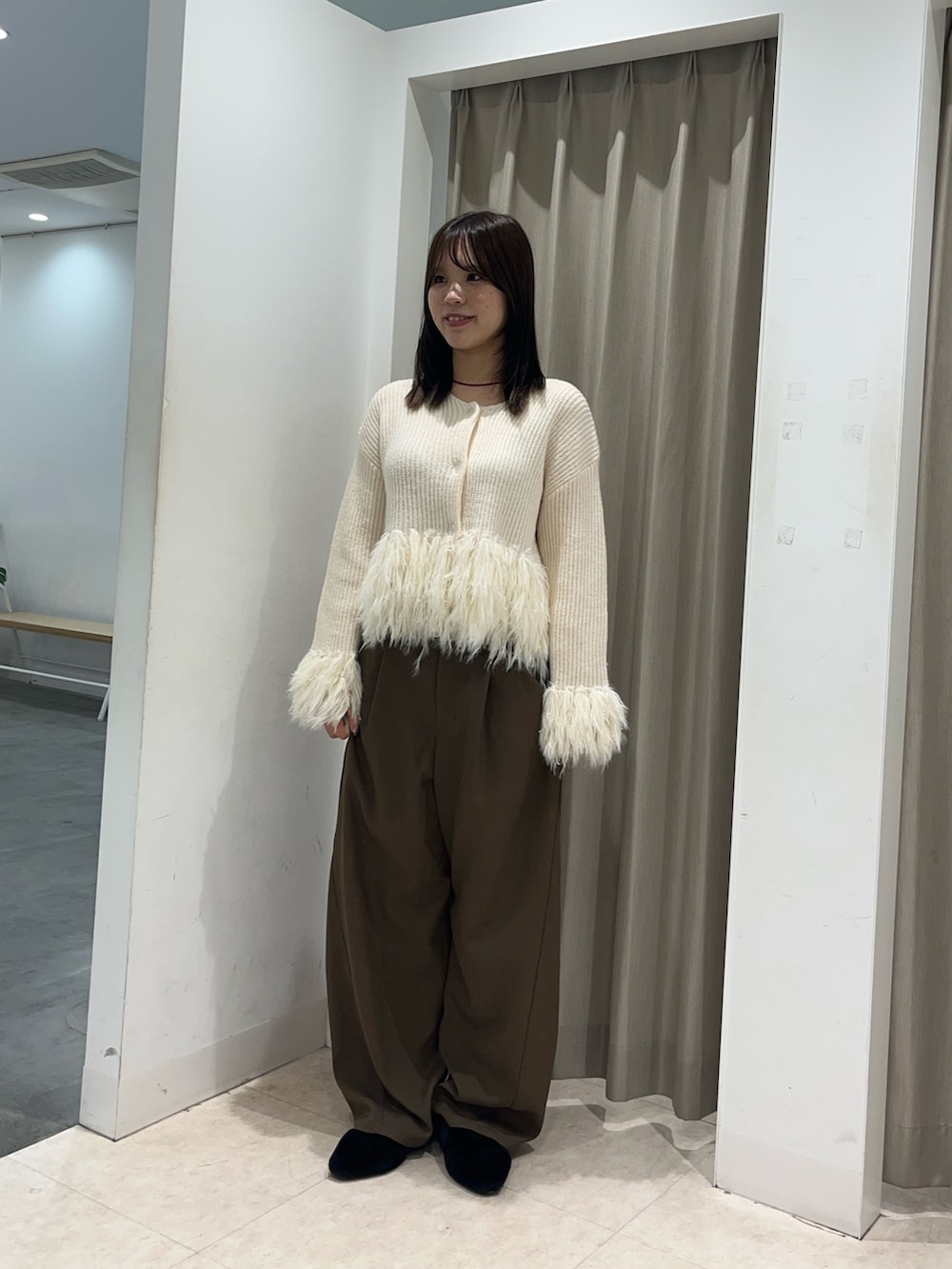 ⚪︎たっぷりのシャギーがポイントのニットは、肌触りがしっとり優しく、厚手すぎないので今の時期にぴったりの着心地。