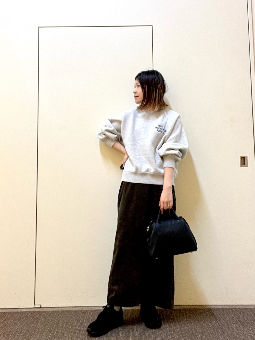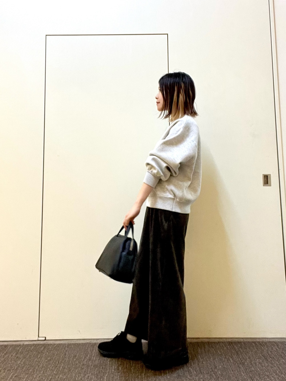ゆるっとしたシルエットが可愛いニットは柔らかくて軽い着心地🧶コンパクトな着丈なのでボトムスとのバランスがとりやすいです◎カジュアル好きな方にはオススメな1枚です!