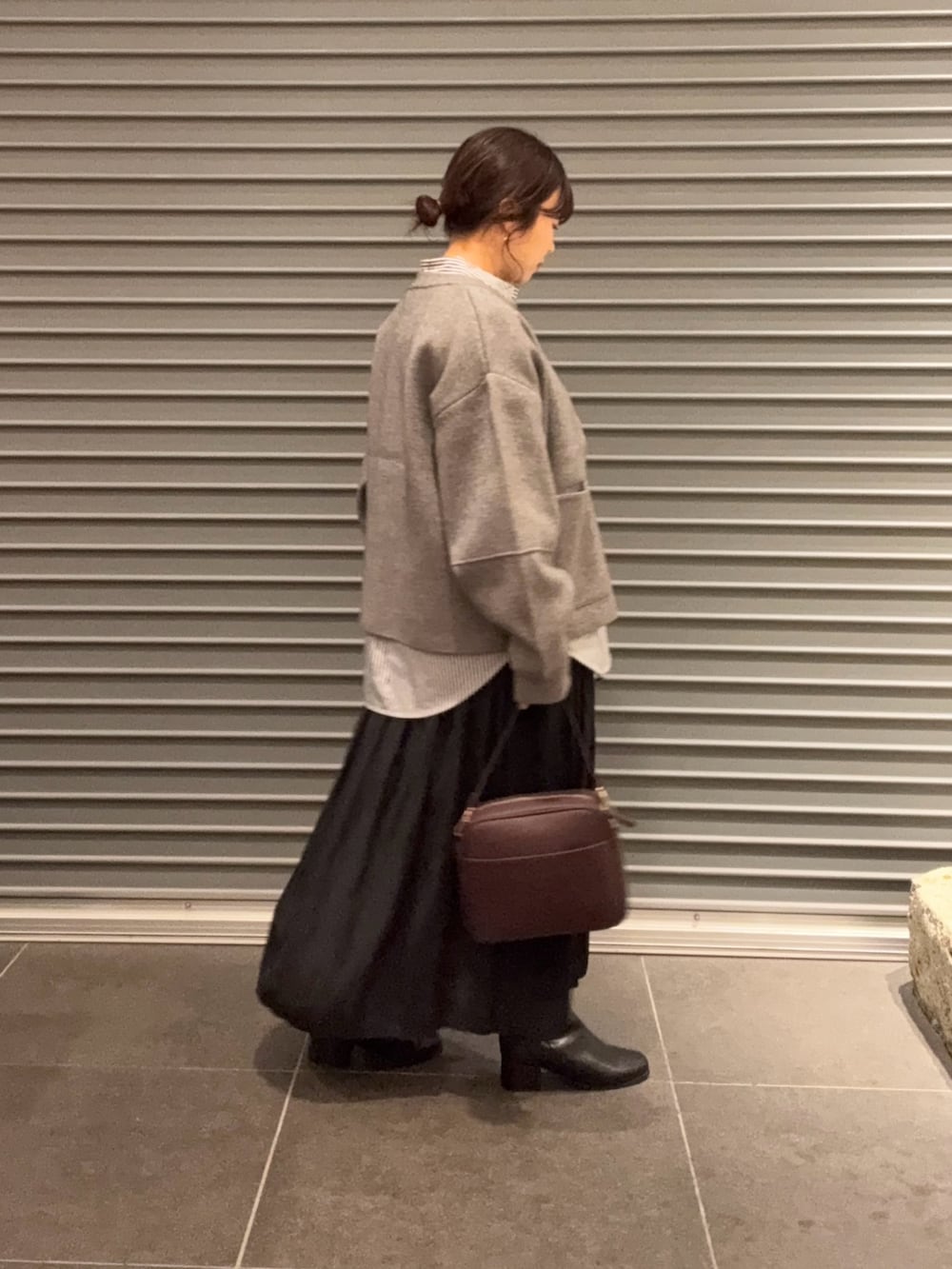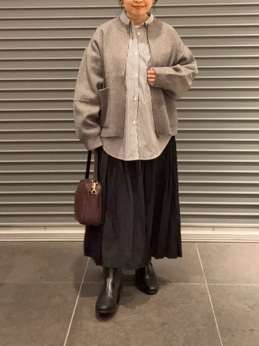 ストライプシャツにプリーツスカートを合わせてキレイめコーデにしました。