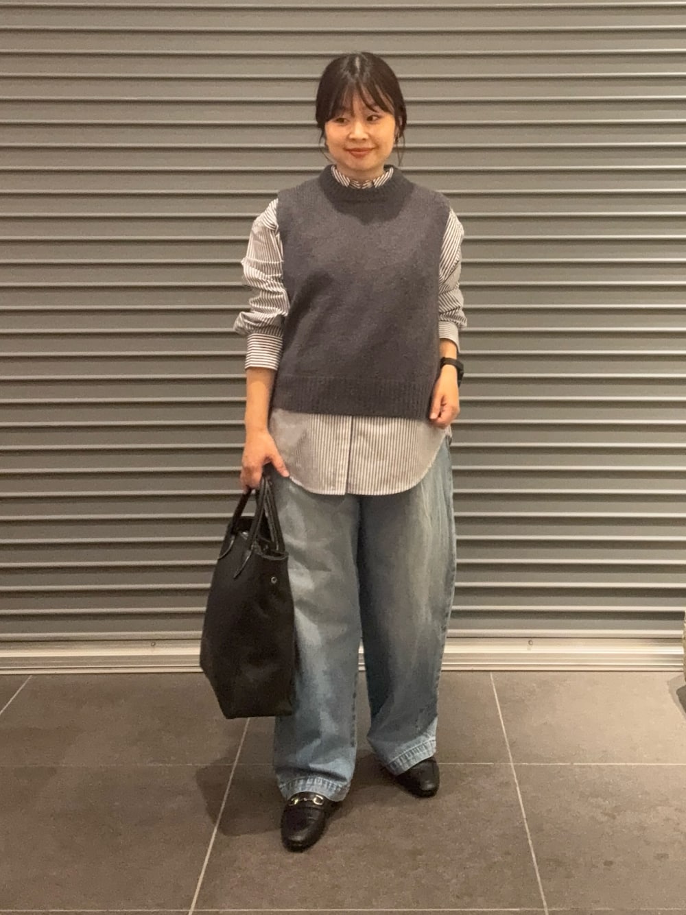 フォーク&スプーンのVネックニットに完声パンツを合わせてシンプルコーデにしました。