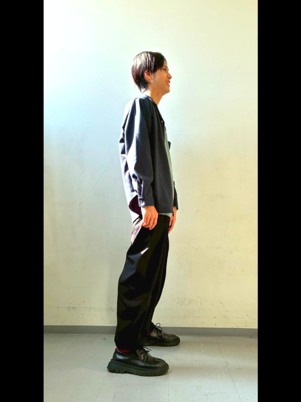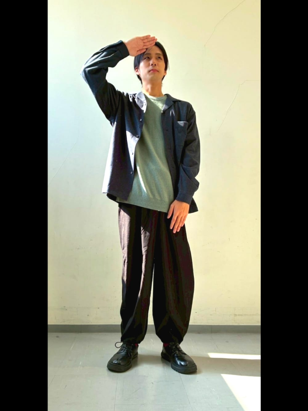 ミントグリーンのニットをアクセントにシャツとパンツでまとめました。