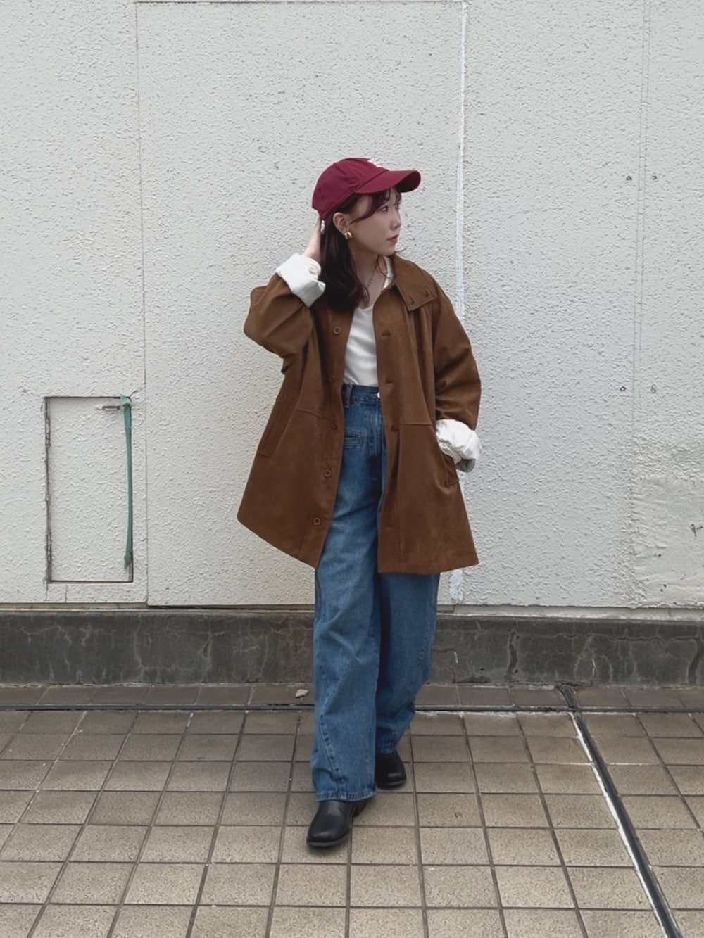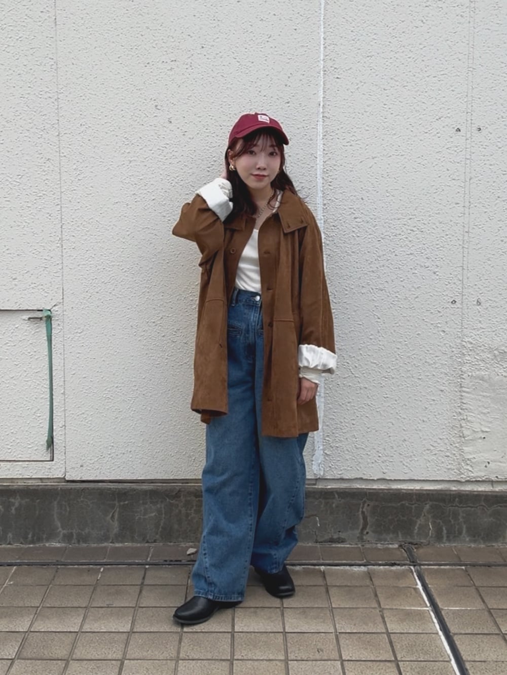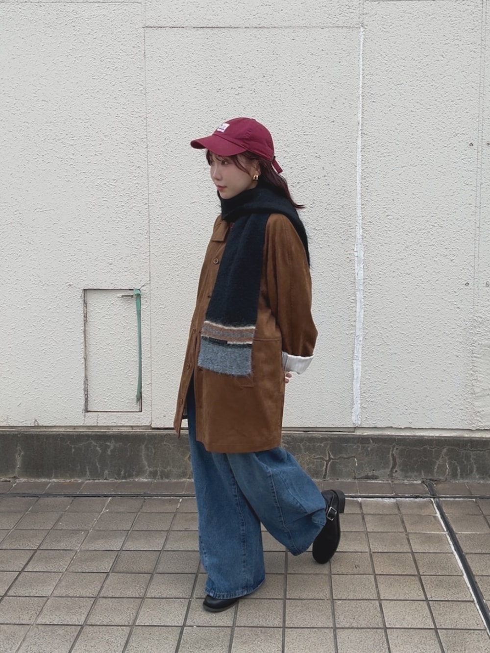 ブラウンのアウターにデニム×マフラーで季節感のあるカジュアルコーデにしてみました✨