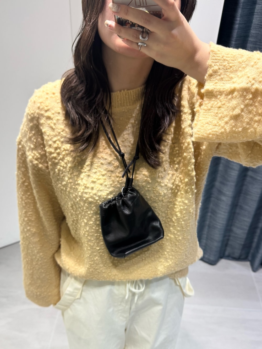 襟のボートネックは首元をきれいに見せつつ抜け感もプラス➕