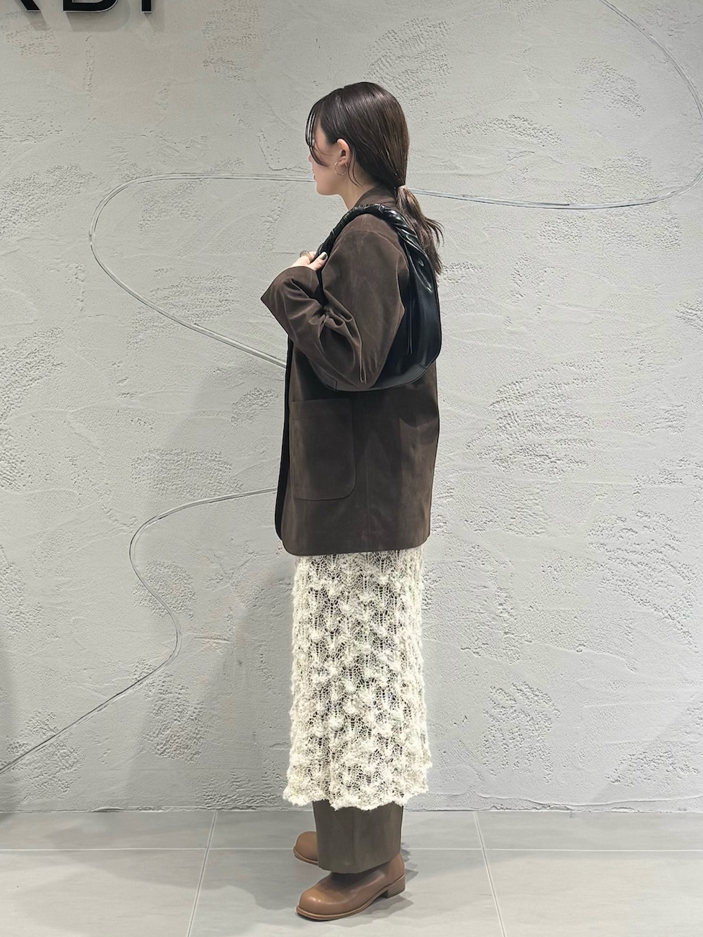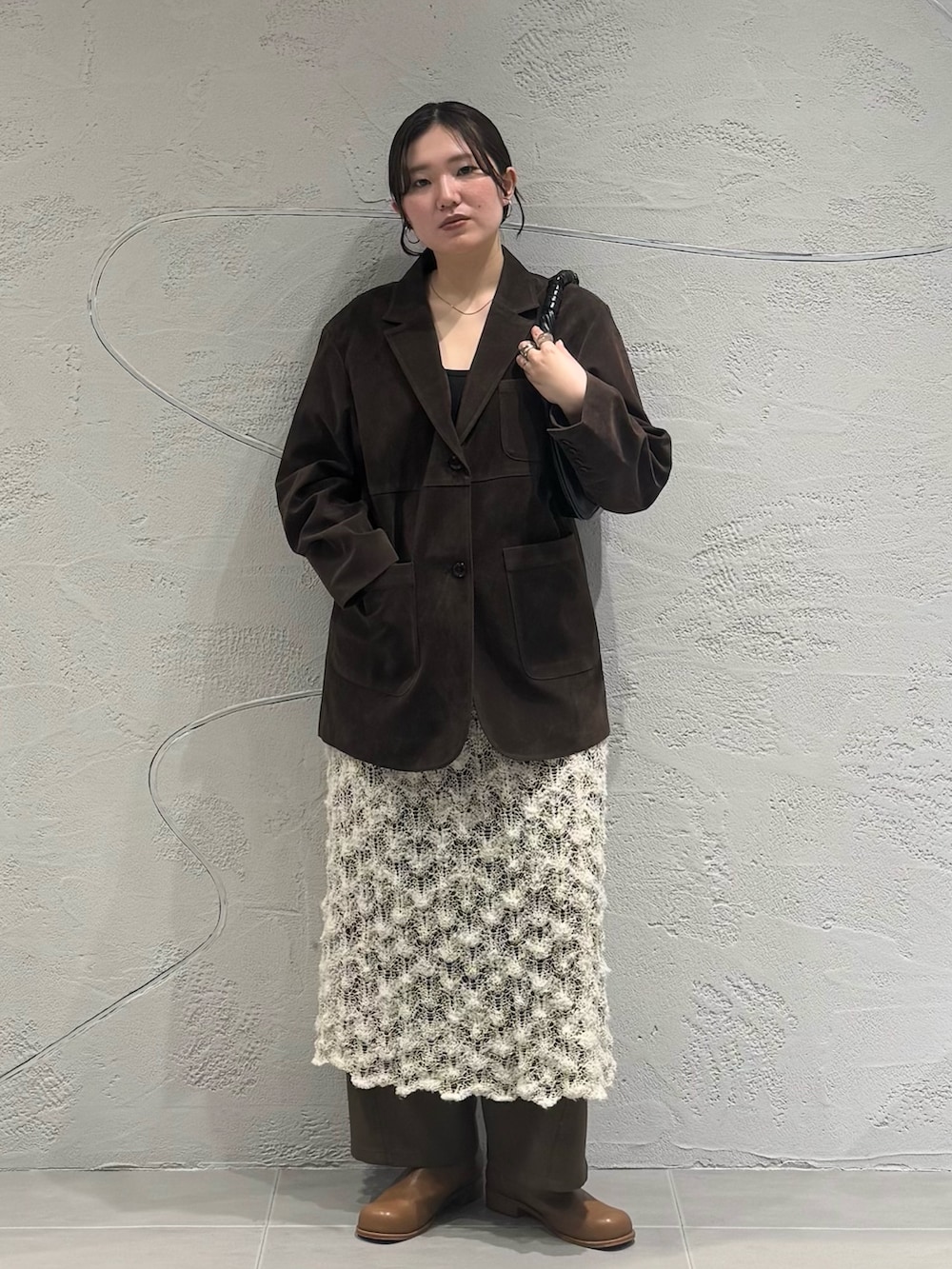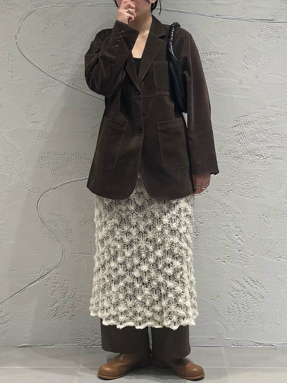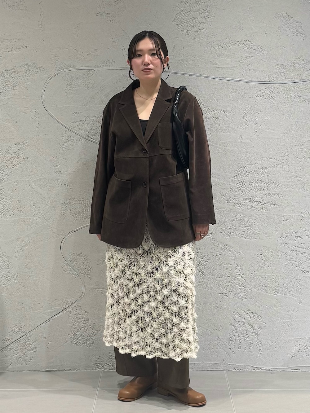 ジャケットは、同素材のミニマルベスト(KBA7-27R050)やトラペーズミニスカート(KBA7-25R020)と合わせて3ピースで着るのもおすすめです🌟