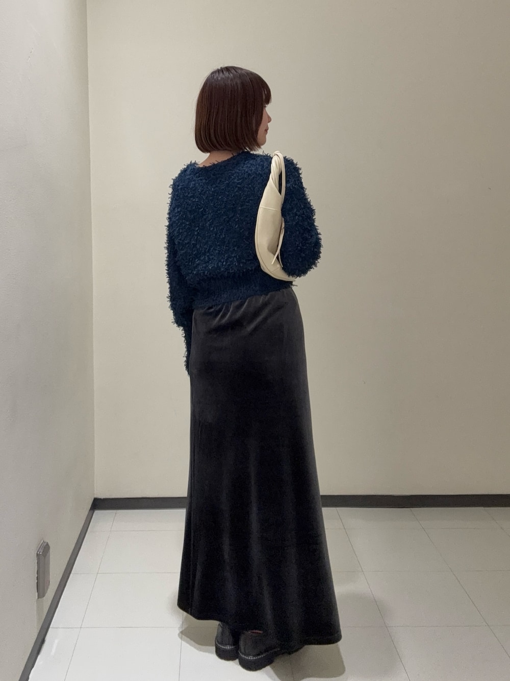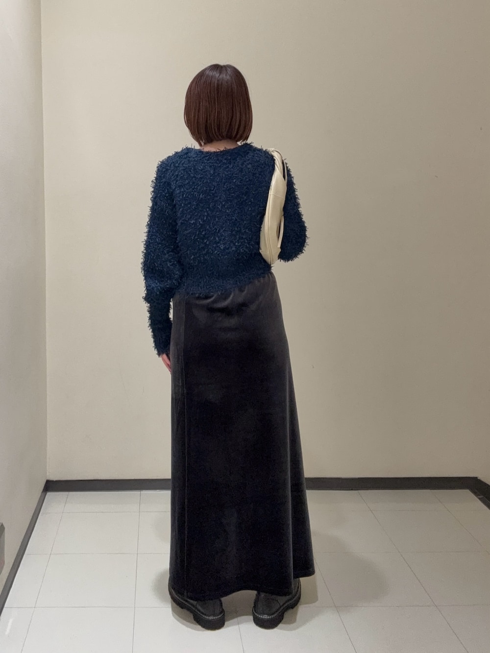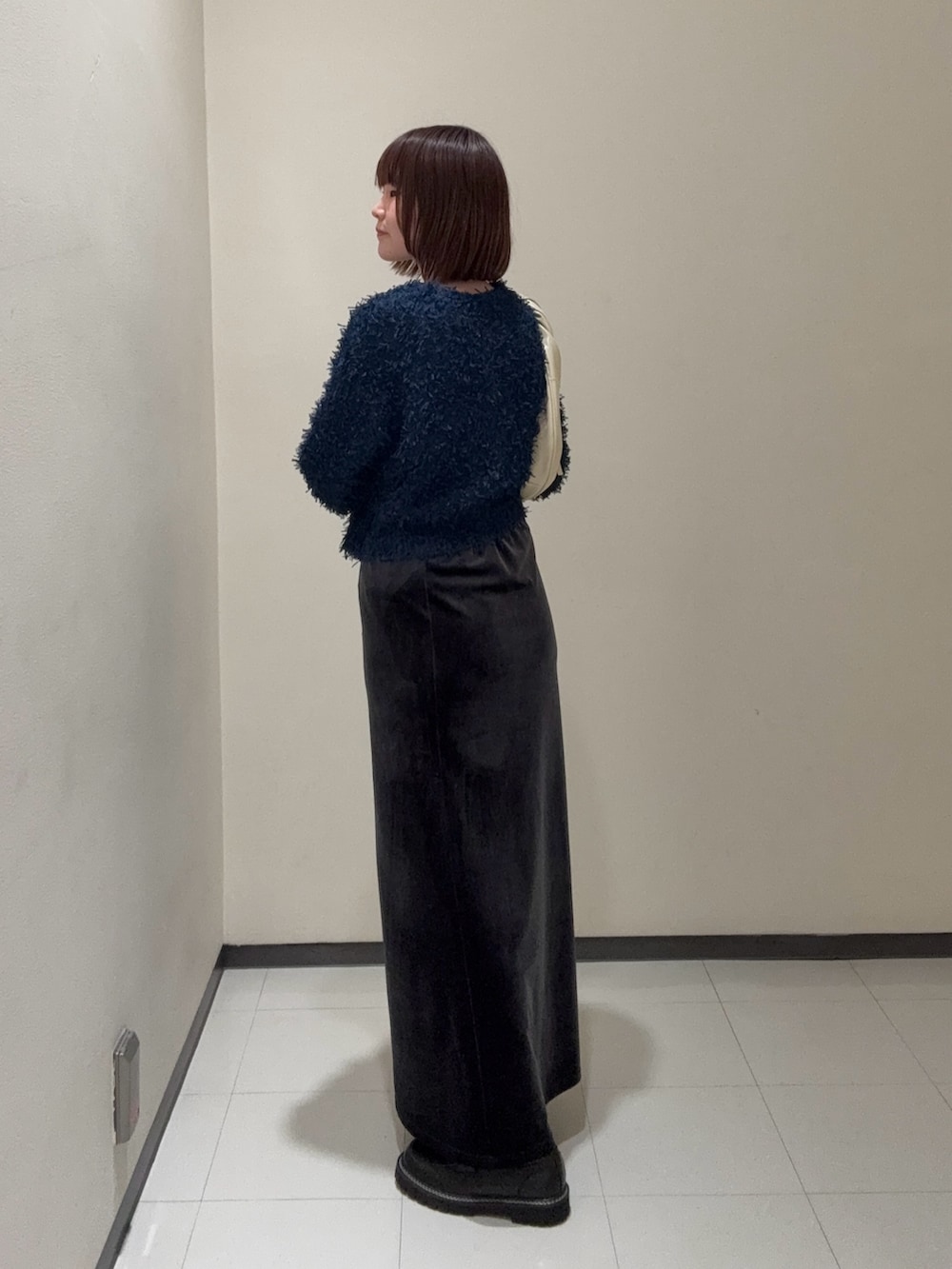 深めの青とグレーのスカートで合わせたので、カーディガンのインナーとバッグのトーンを明るめにしたのもポイントです!☺️