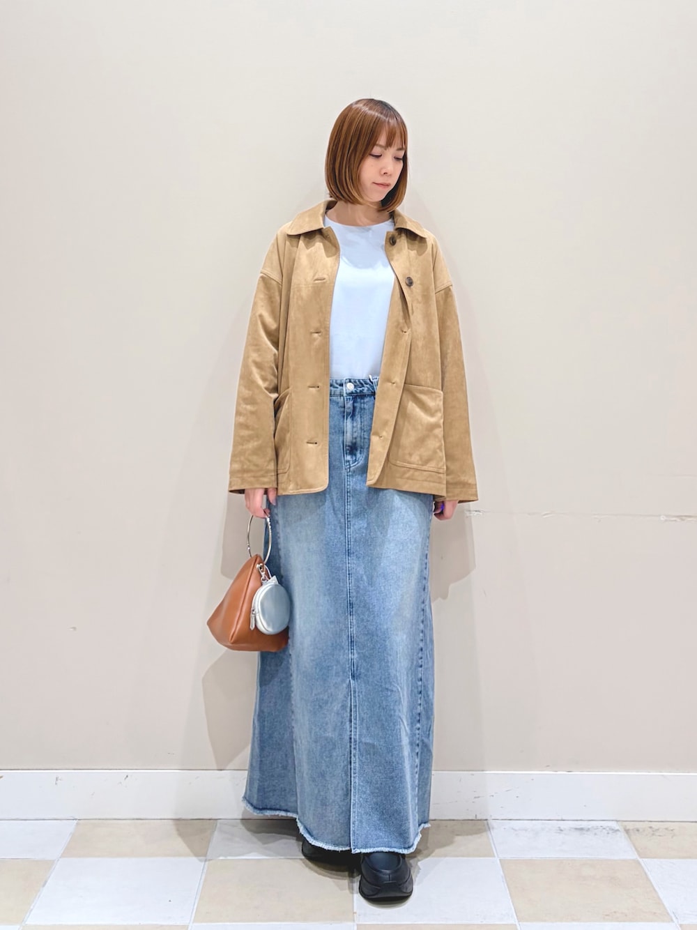 リバーシブルで羽織れるボアベストにハイネックのインナー、ウールライクなキャミワンピースで大人可愛いテイストのスタイルに。