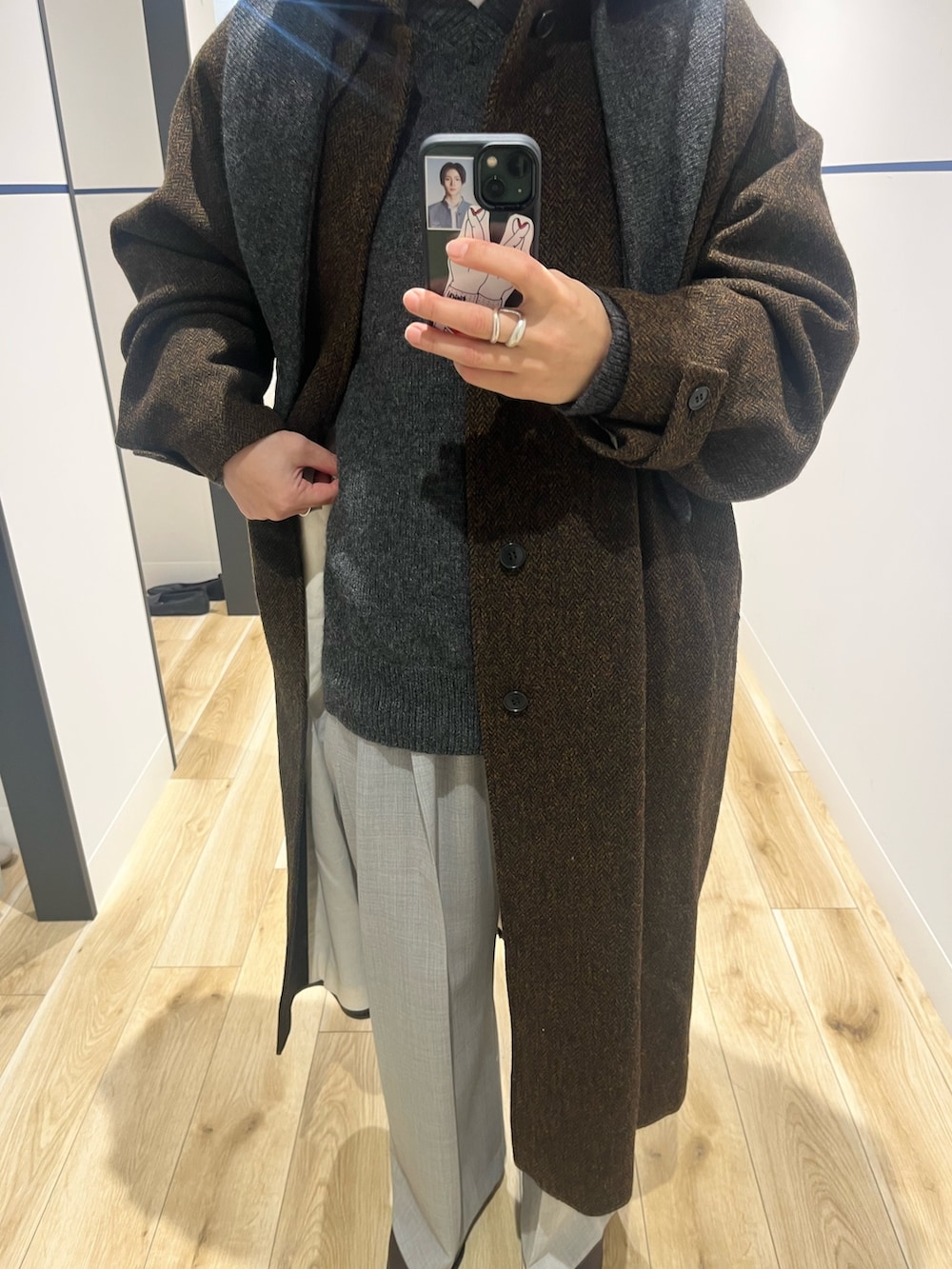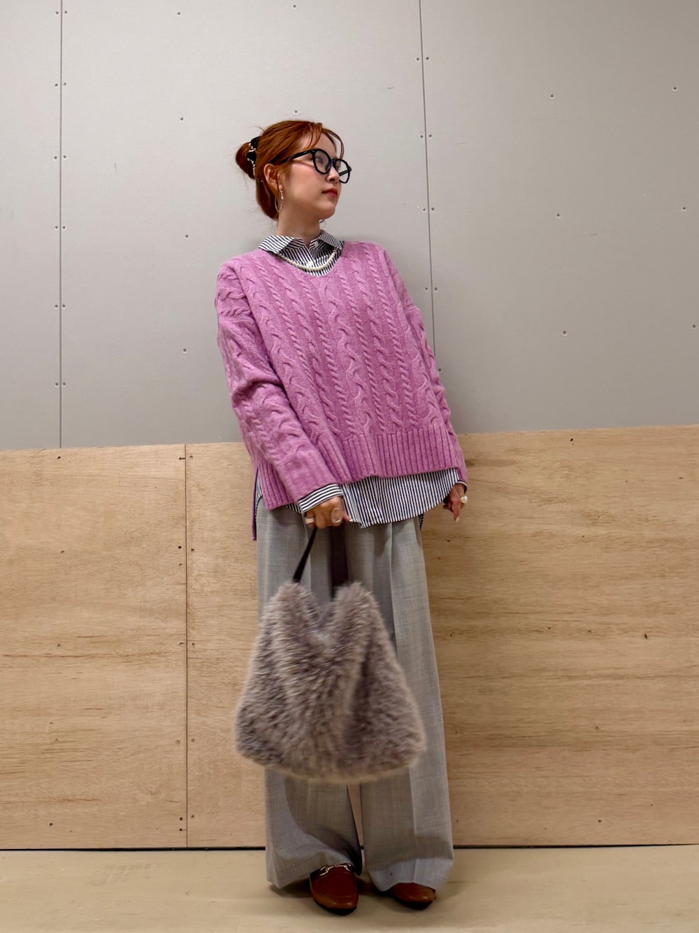 ヤクウールVネックニットにヤクウールフードマフラーをプラスして、統一感を出しました♡
