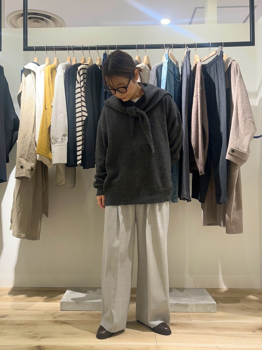 ボトムのウォッシャブルウールイージーパンツは本当に履きやすく、タックも施されているので型もとってもきれい!!