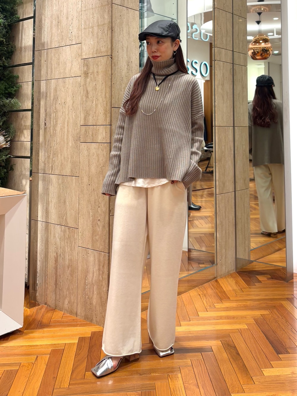 F by ROSSOのハミルトンニットは首周りがスッキリでアクセ映え抜群◎